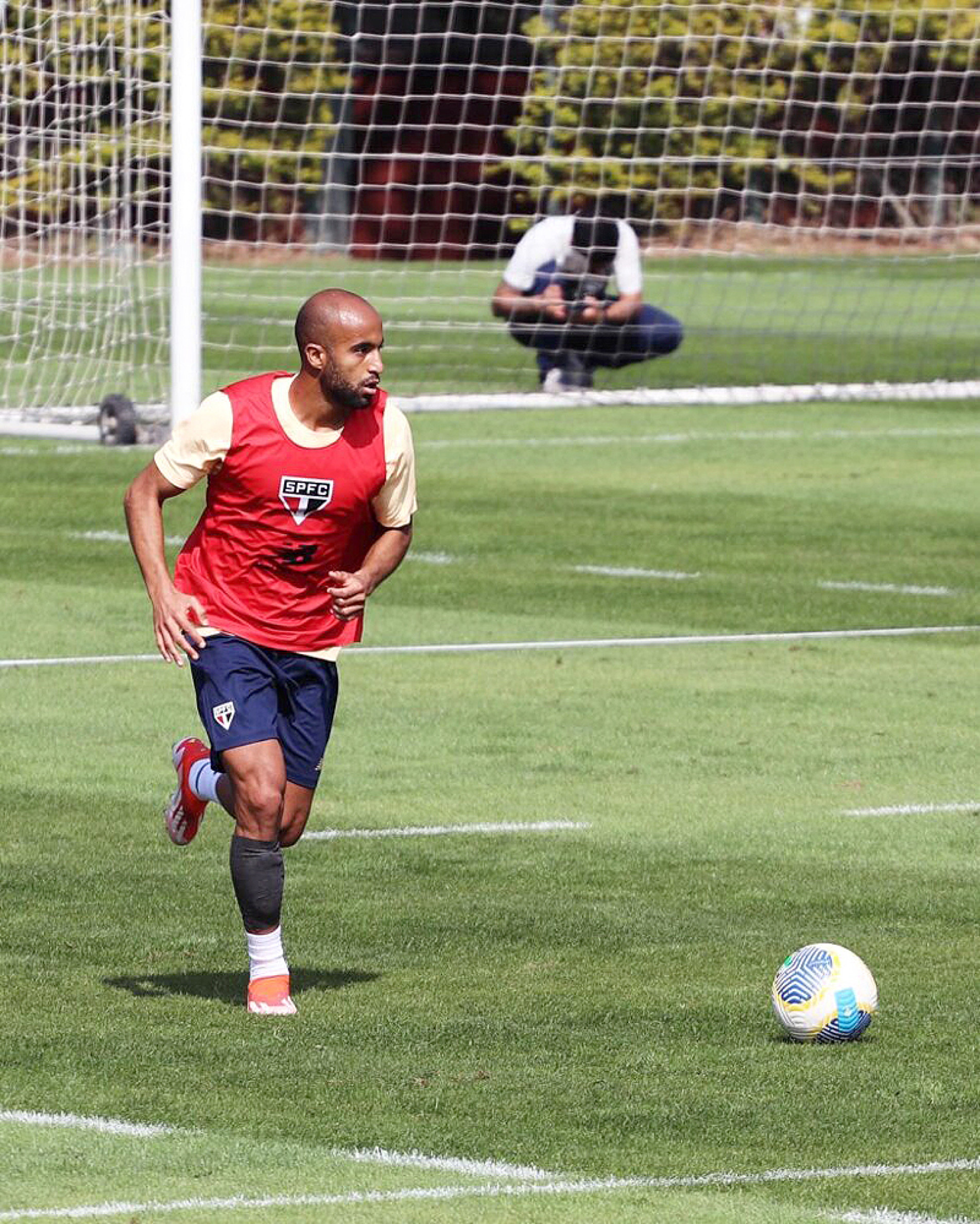 Treino sem limitações - O São Paulo iniciou a preparação para o confronto com o Fortaleza, amanhã (2), às 21h30, no MorumBis, pela sétima rodada do Brasileirão. A novidade no gramado do CT da Barra Funda foi o meia-atacante Lucas Moura (foto), que está em fase final de recondicionamento físico após sofrer um trauma no joelho direito e poderá ficar à disposição do técnico Luis Zubeldía.