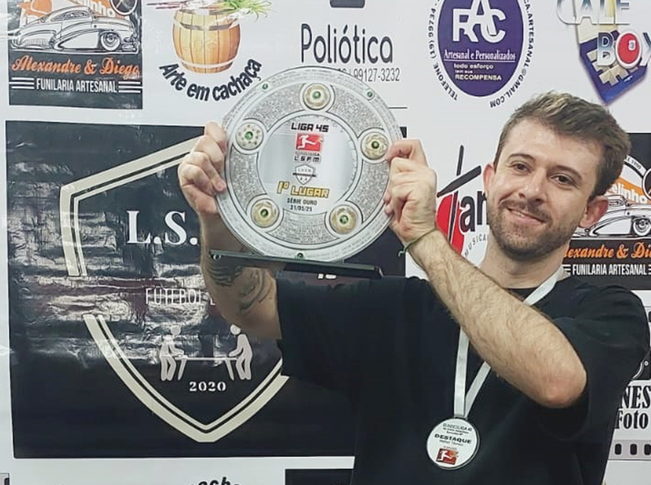 Em um jogo bastante equilibrado, o sorocabano Léo Demilite (foto) derrotou Renato Gonçalo, representante da Liga ABC, por 3 a 2 e, assim, conquistou o título da Liga 45 Bundesliga, torneio de futebol de mesa promovido pela Liga Sorocabana de Futebol de Mesa (LSFM). A competição, disputada no fim de semana, reuniu 25 botonistas, alguns deles de outras cidades do Estado. Além de Léo, o campeão da chamada Série Ouro, os demais vencedores foram: Adilson Tinão (Série Prata) e Júlio Ercolin (Série Bronze). (Da Redação)