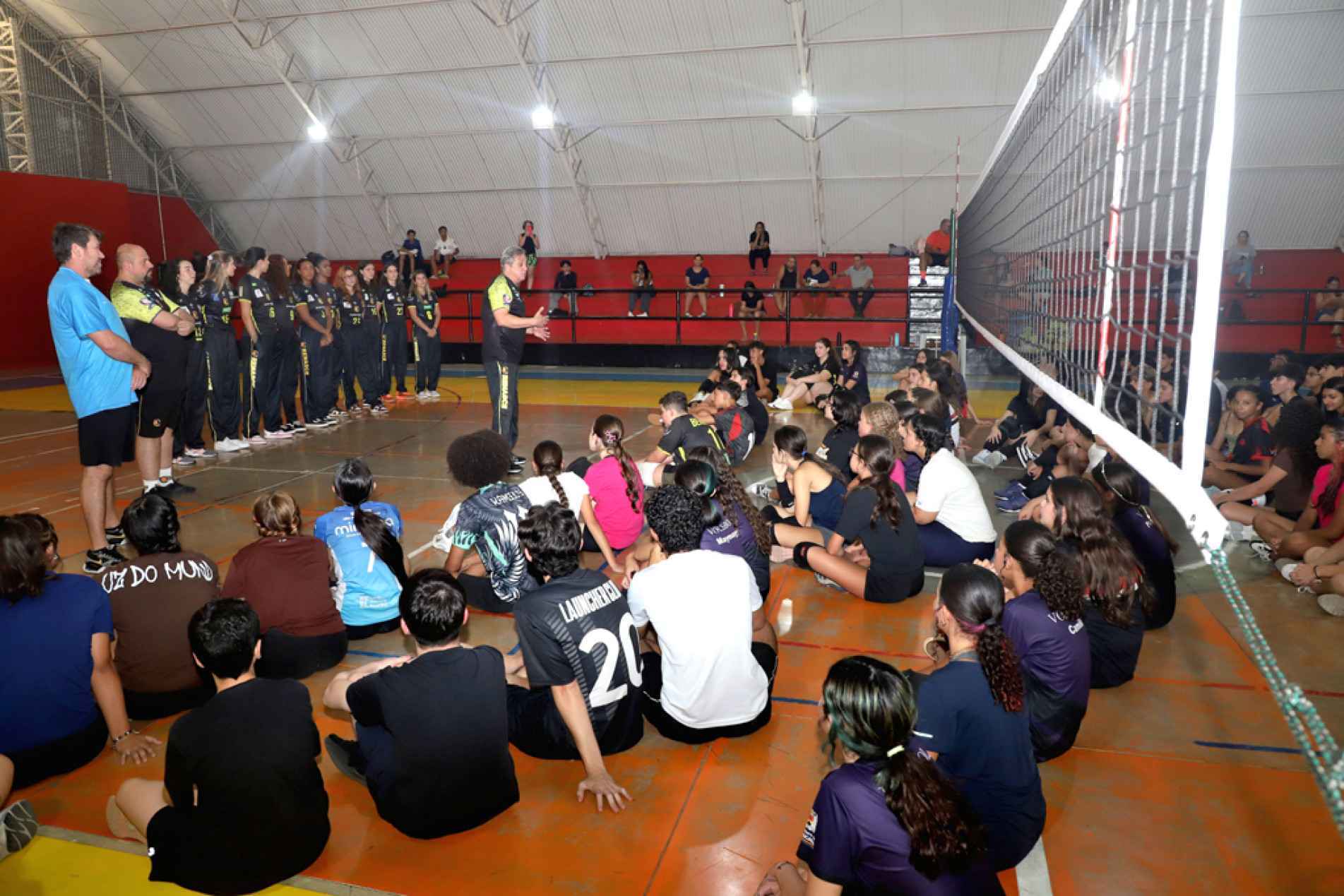 O evento teve início com um bate-papo conduzido por Clóvis Granado — um dos responsáveis pelo projeto — e pelas jogadoras. Durante a conversa, foram abordados temas como a rotina de uma atleta de alto rendimento, foco, disciplina e cuidados essenciais envolvendo treinamento físico, nutrição e preparação. Segundo as atletas, o voleibol de alto nível exige dedicação constante, tanto dentro quanto fora da quadra.