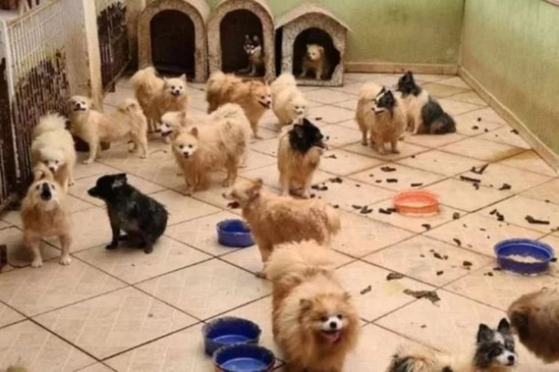 Os cãezinhos, em sua maioria da raça spitz-alemão, estavam em um canil clandestino que funcionava em um condomínio fechado