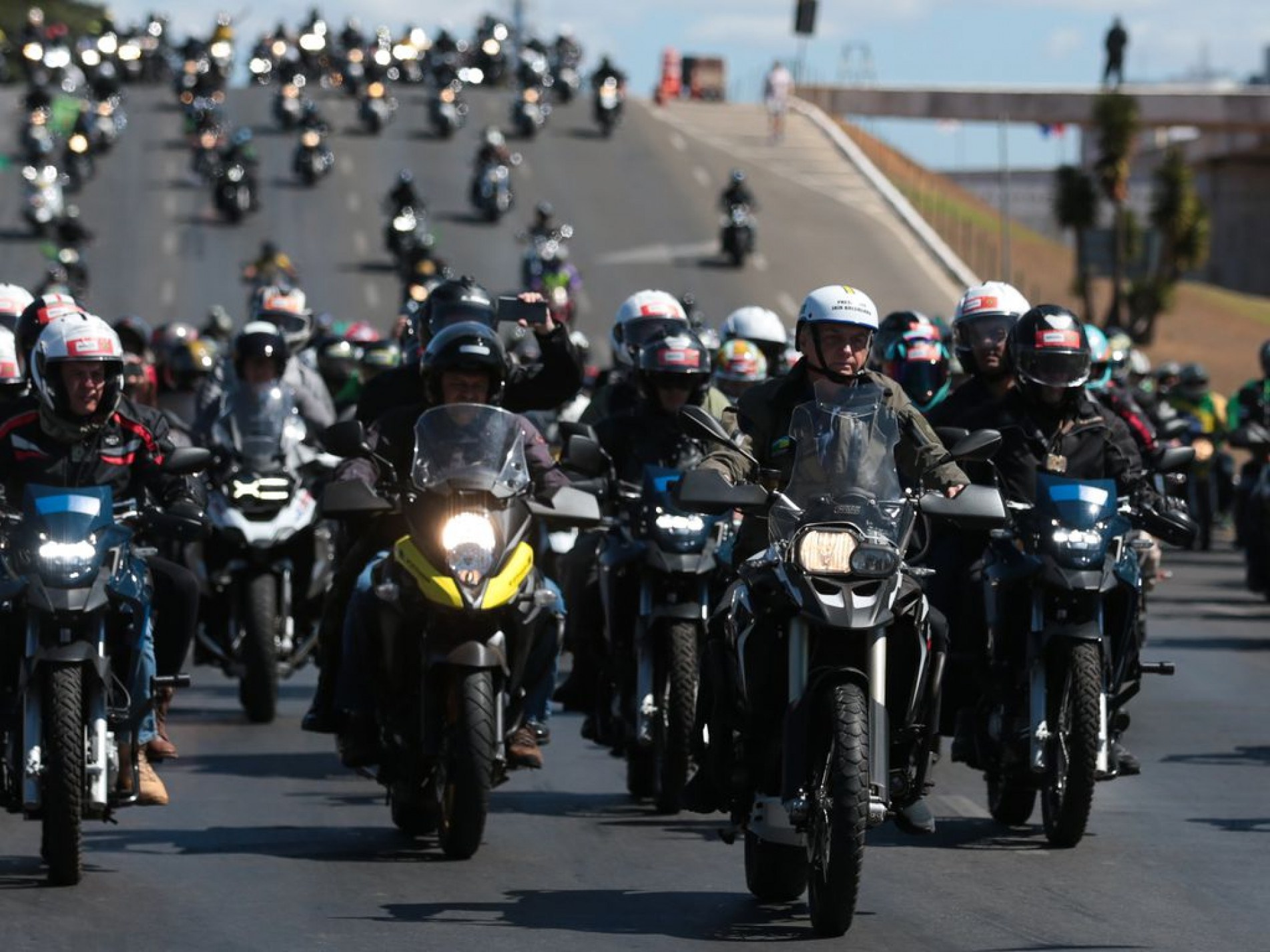 O presidente Jair Bolsonaro participa nesta sexta-feira (15) de uma manifestação com motociclistas em São Paulo. O grupo saiu por volta das 10h30 da região do Sambódromo do Anhembi, na zona norte da capital paulista, e seguiu em direção a Americana, no interior do Estado, em um percurso de cerca de 120 quilômetros.