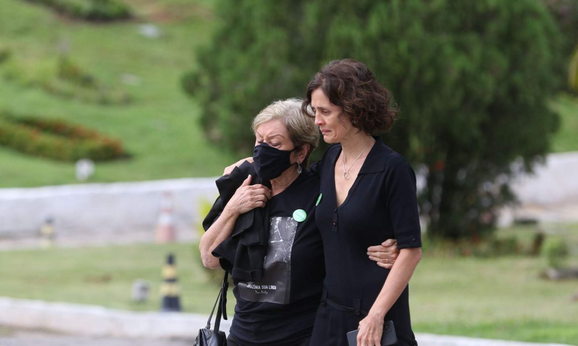 Do lado de fora do cemitério, um grupo de manifestantes levou uma faixa que questionava: "Quem mandou matar Dom e Bruno?". Segundo o inquérito da Polícia Federal, não há indícios de que haja mandantes na ação criminosa que matou os dois.
