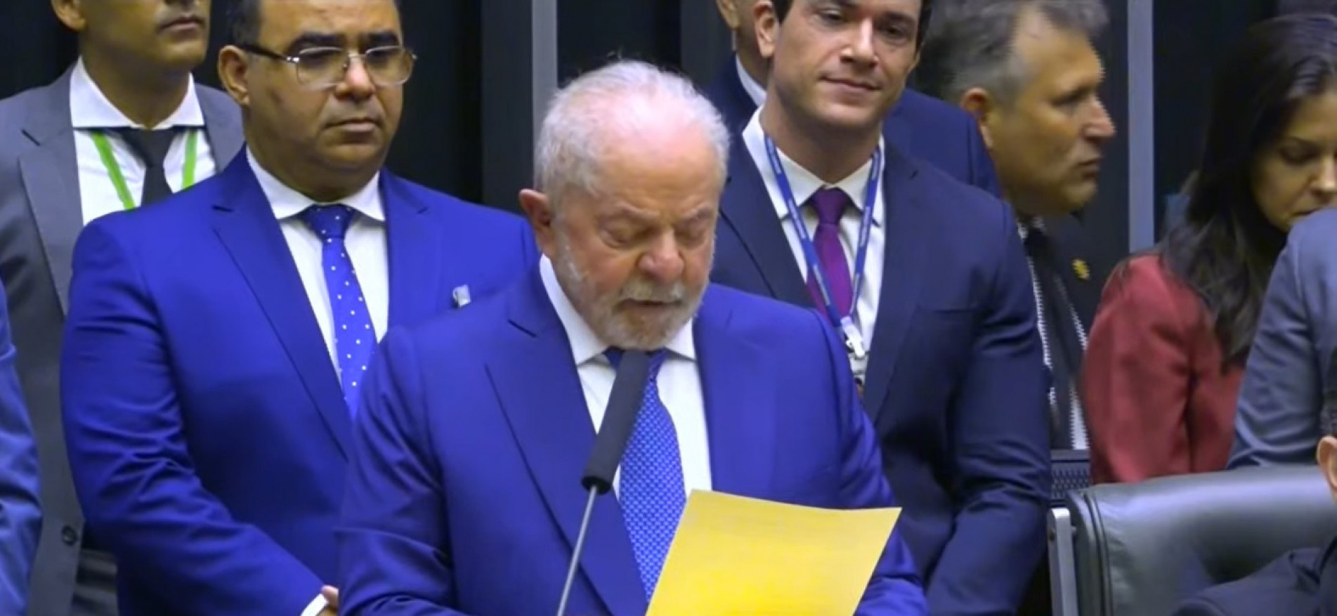 Luiz Inácio Lula da Silva (PT) foi oficialmente empossado presidente da República neste domingo (1). No Congresso, Lula discursou durante 31 minutos para os convidados. Estiveram presentes deputados e senadores, atuais e eleitos, ministros escolhidos por Lula, ministros de tribunais superiores, familiares do presidente eleito, familiares do vice-presidente eleito, Geraldo Alckmin (PSB), funcionários do Congresso Nacional, ex-presidentes da República, ex-presidentes do Congresso e 80 integrantes de delegações.