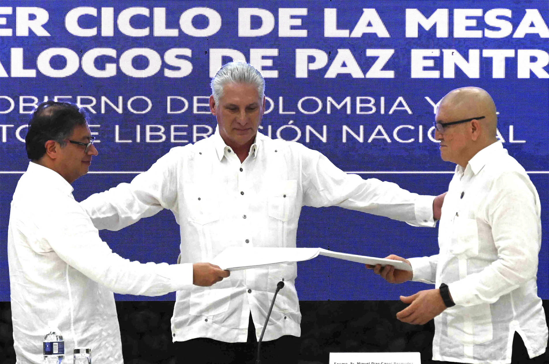 O governo colombiano e o Exército de Libertação Nacional (ELN) assinaram, nesta sexta-feira (9), em Havana, um acordo de cessar-fogo nacional e temporário de seis meses, na presença do presidente Gustavo Petro e do líder desta guerrilha, Antonio García.