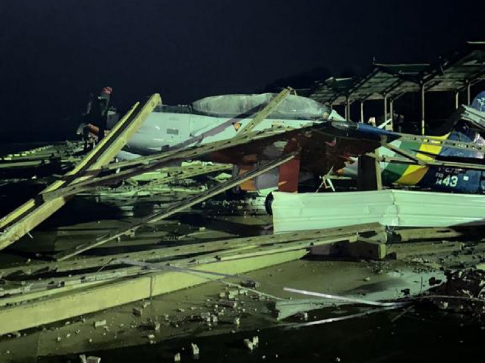 Com a força do vento, a estrutura rompeu causando danos substanciais a três aeronaves e danos leves a outras oito. Em vídeos divulgados nas redes sociais é possível ver a força do vento que atingiu a cidade. Imagens mostram também aeronaves danificadas e partes de estruturas no chão.