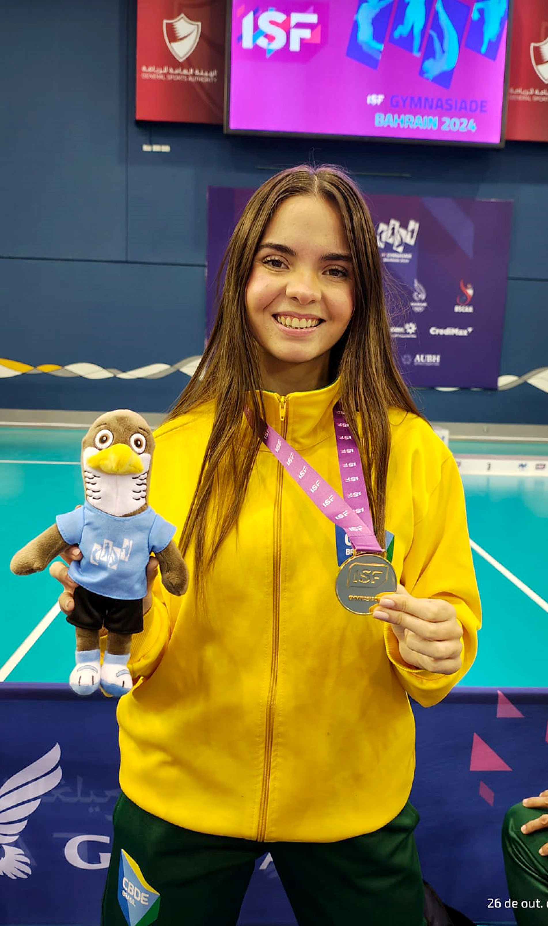 Beatriz Martins Lins, 15 anos, alcança o lugar mais alto do pódio, em Bahrein, após vencer cinco lutas