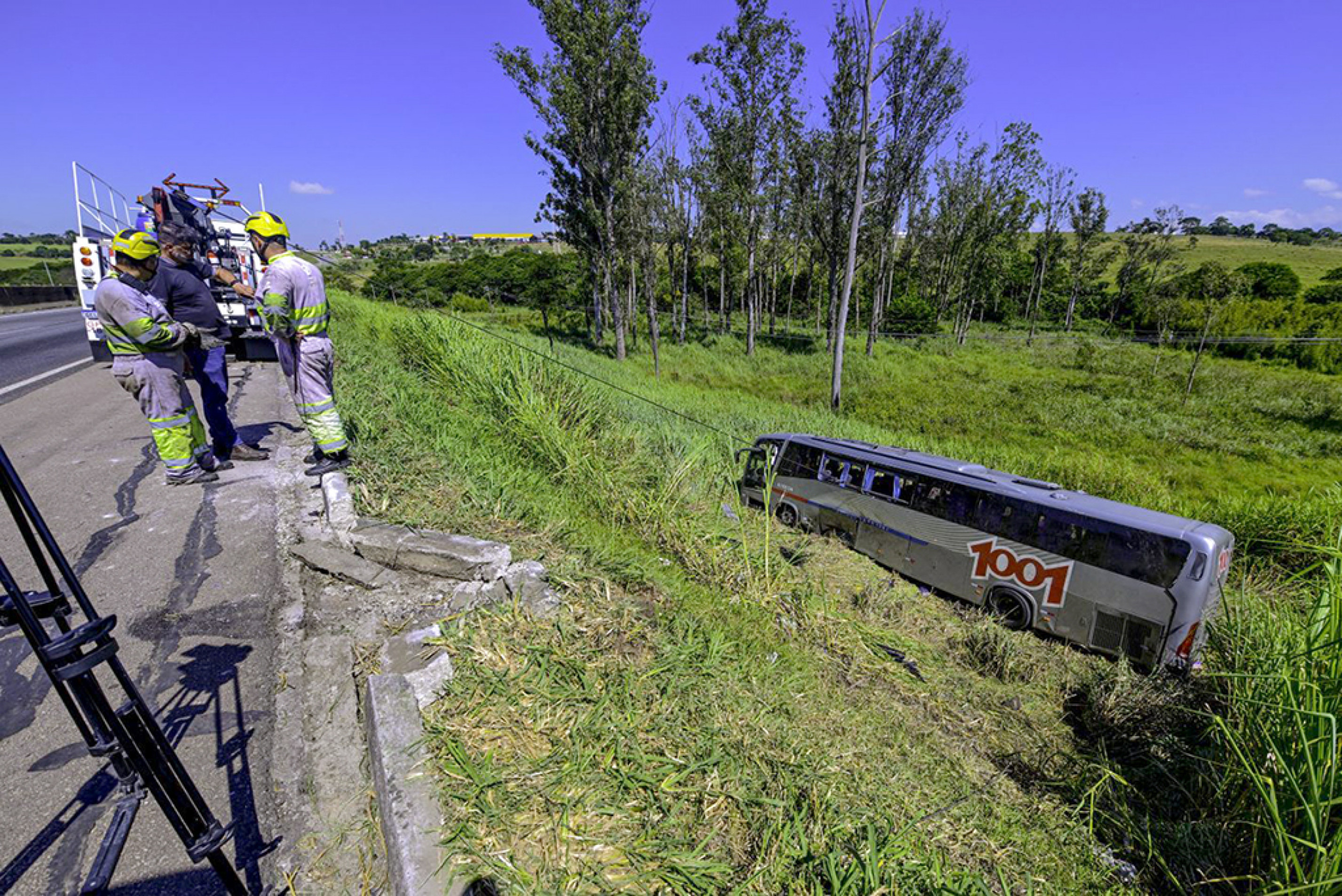 Um ônibus da empresa Viação 1001 caiu em uma ribanceira na rodovia Presidente Dutra, na manhã de ontem (6). Segundo a Polícia Rodoviária Federal, o veículo subiu o meio-fio e tombou após manobra do motorista. Um menino de 13 anos chegou a ser socorrido, mas morreu no hospital. 45 pessoas estavam dentro do ônibus. Ao todo, 26 pessoas ficaram feridas.
