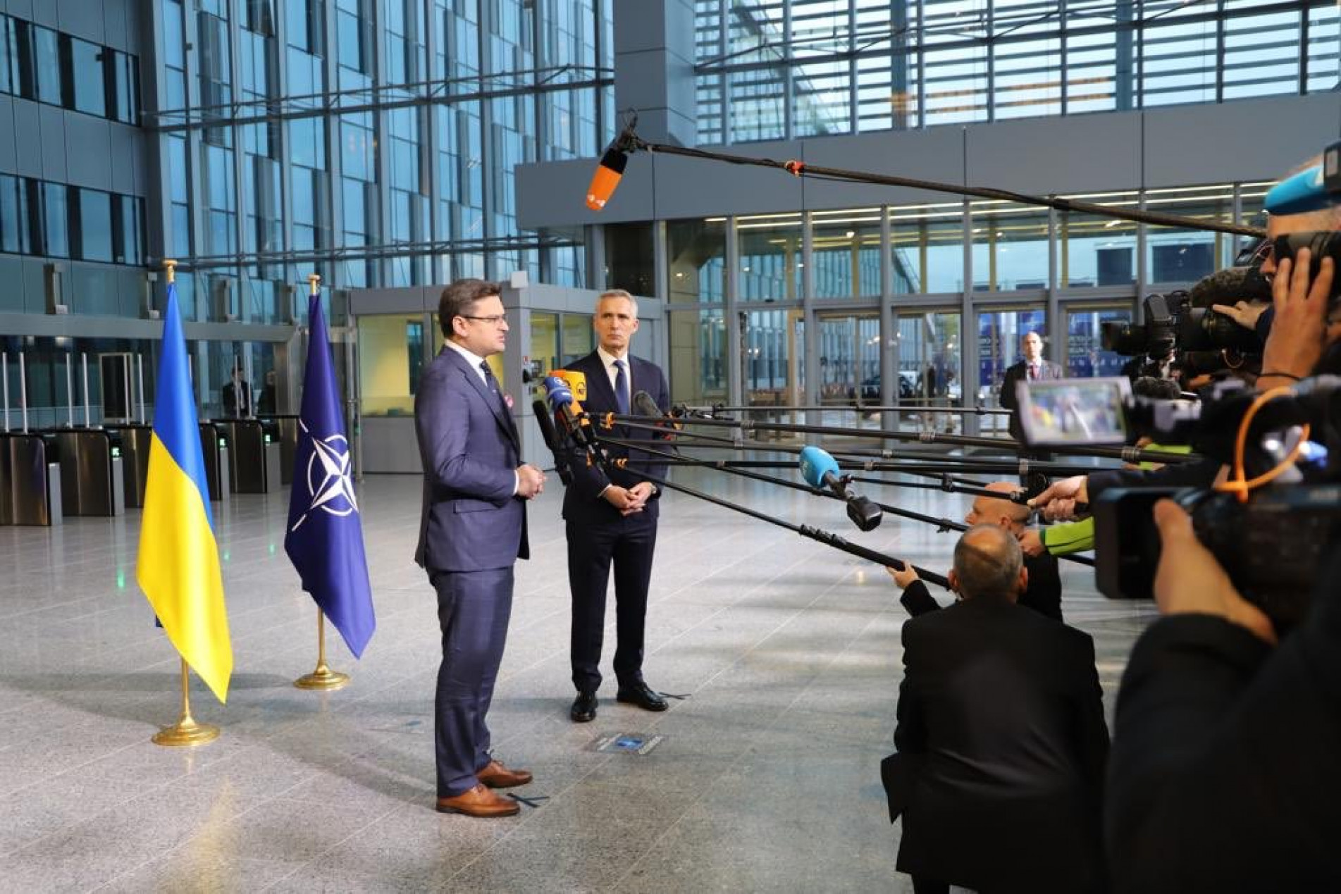 O secretário-geral da Otan, Jens Stoltenberg disse que os aliados têm fornecido a ajuda solicitada, e em paralelo pressionado a economia de guerra do Kremlin, aprovando sanções sem precedentes. Stoltenberg tem expressado preocupações com a possibilidade de uma ofensiva das tropas russas "nas próximas semanas" para tomar "a totalidade" da região do Donbas, advertindo que a "brutalidade" revelada pelos "crimes de guerra" na cidade de Bucha pode se repetir.