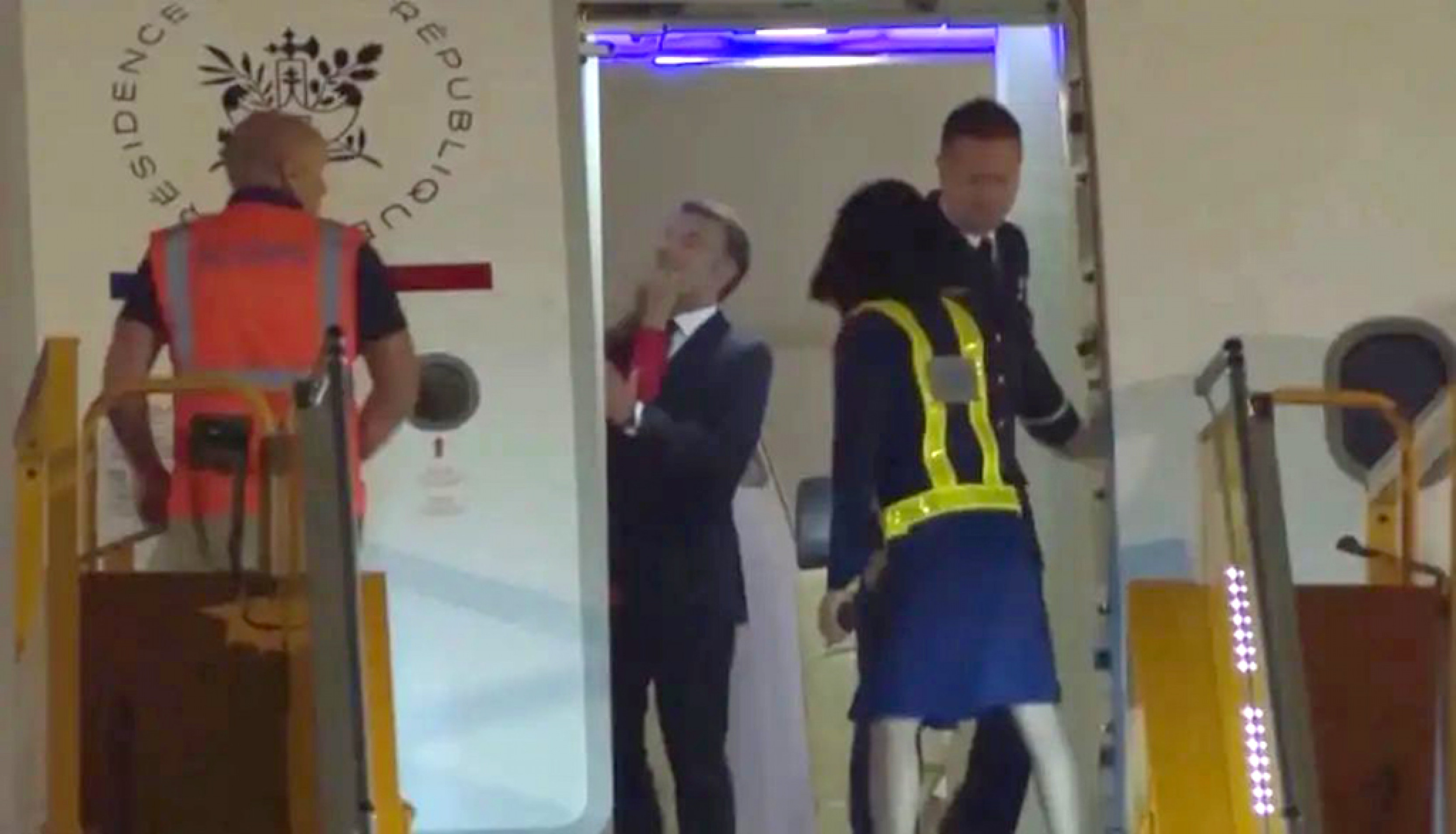 Em imagens subsequentes, no desembarque em Hanói, no Vietnã, Macron e sua mulher, vestindo uma jaqueta vermelha, apareceram no topo da escada. Ele ofereceu o braço, mas ela não o aceitou. Desceram lado a lado a escada acarpetada.