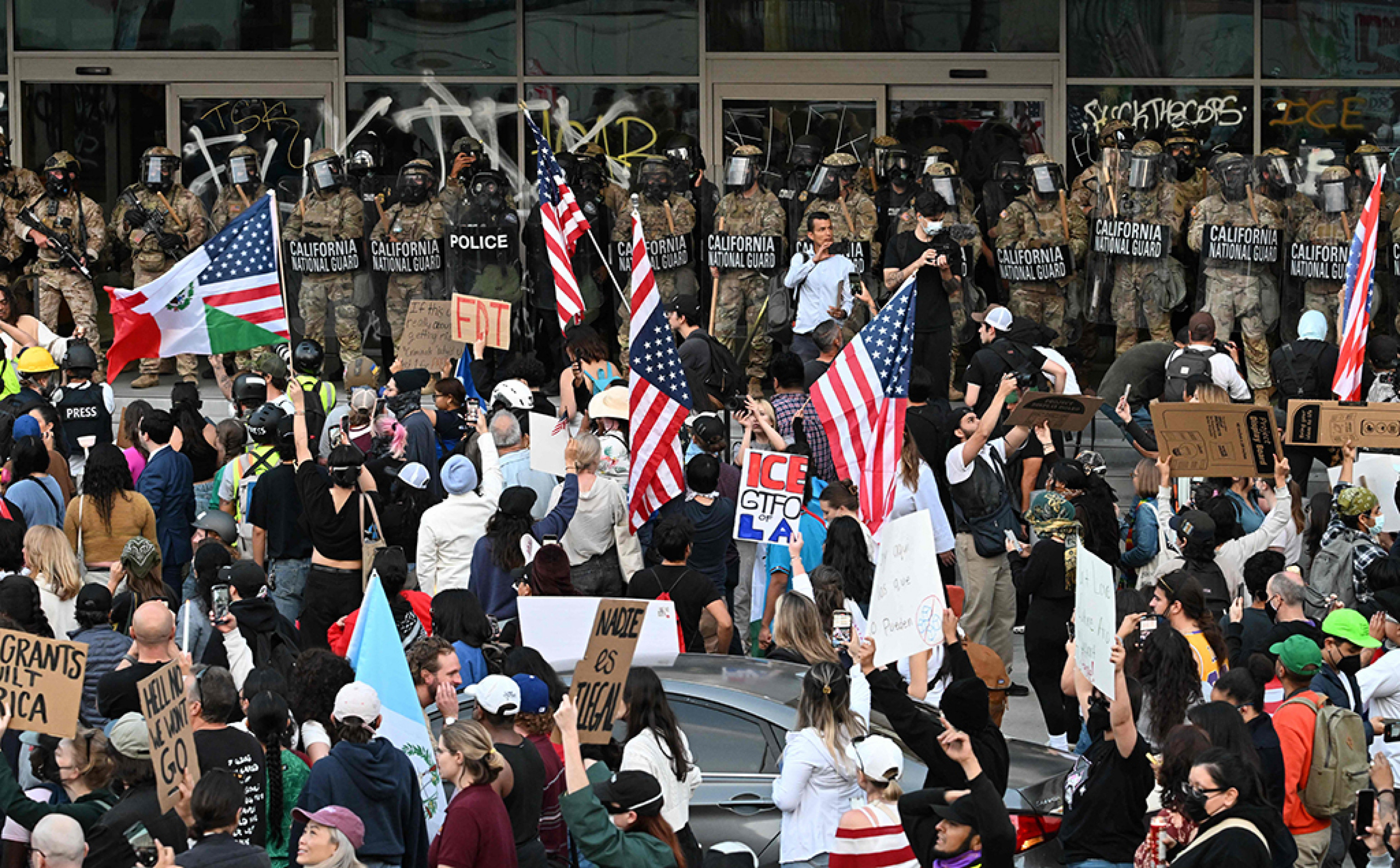 Desde sexta-feira, a segunda maior cidade dos Estados Unidos, com uma grande população de origem hispânica, é cenário de distúrbios entre os manifestantes que denunciam as operações do Serviço de Imigração e Alfândega (ICE) contra os migrantes sem documentos.