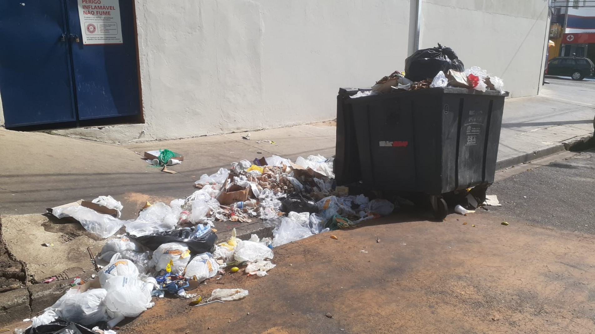 A situação piora aos sábados e domingos, pois, como os coletores não passam, todos os resíduos jogados nesses dois dias ficam nos contentores até segunda-feira. De acordo com Carlos, devido à falta de espaço, há pessoas que até colocam os sacos no chão, ao lado das lixeiras. Isso gera outra complicação, pois cães rasgam os plásticos e espalham os lixos pelas ruas. “A montanha de lixo é tão grande que os cachorros sobem nela atrás de comida”, contou.