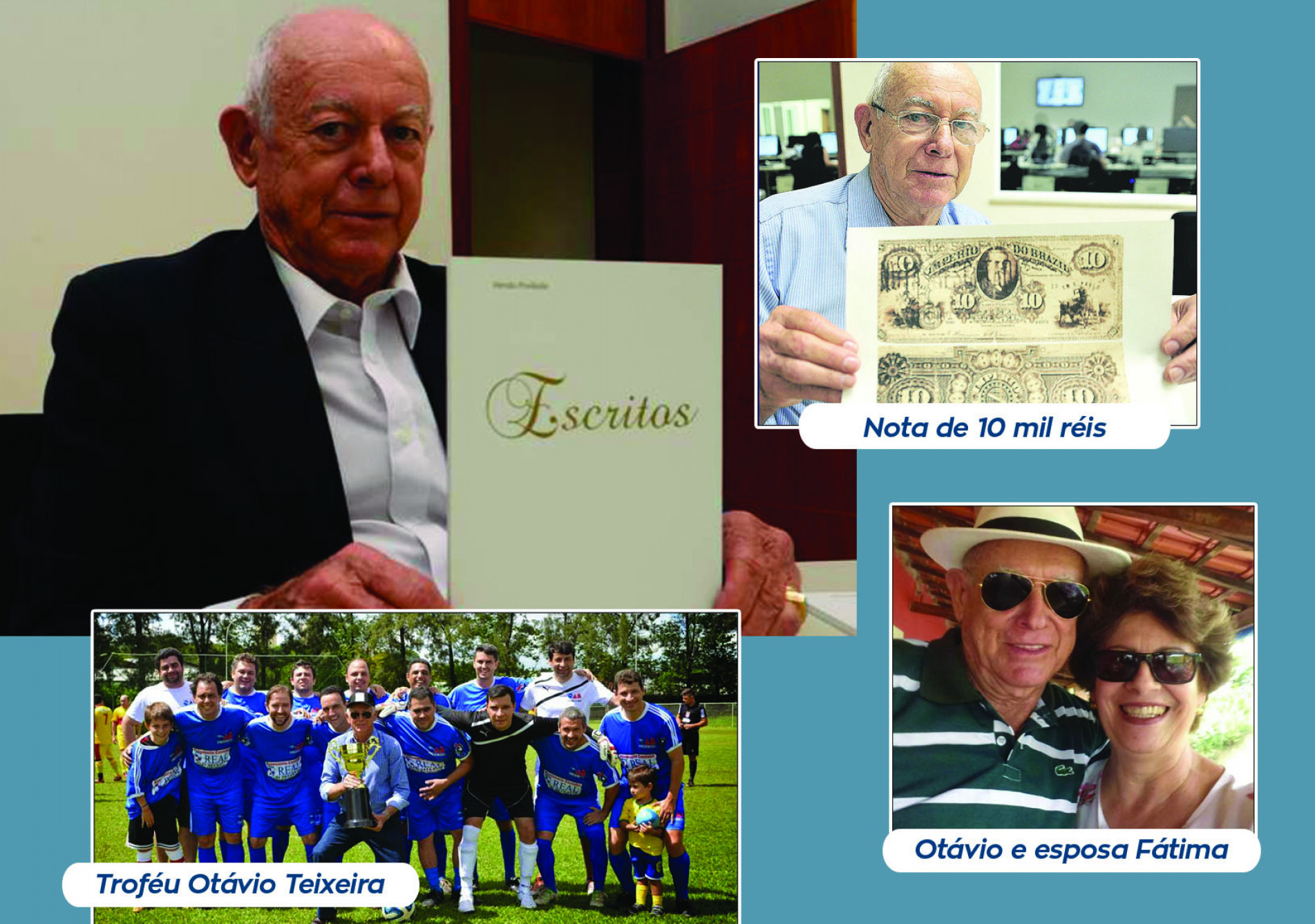 Conquistou seu espaço pela competência na administração bancária em Sorocaba. Foi gerente do Banco São Paulo numa época em que as instituições financeiras valorizam o ser humano no contato pessoal com os seus clientes. Hoje tudo é virtual. Escritor, nato publicou seus artigos em jornais e livros. Foi editor da revista “Uma linda história de um Banco de São Paulo”. Curiosa a busca incessante do Otávio para encontrar uma cédula de 10 mil réis. Ele saiu à caça dessa nota antiga e quase desanimou pela ausência até entre os colecionadores. Inclusive pesquisou com pessoas na França. Quem salvou o Otávio Teixeira foi o engenheiro brasileiro João Marcos Quattrer. Por sorte -- ou coincidência --, o João soube do interesse do Otávio pela nota dos 10 mil réis. Disse que o seu pai tinha trabalhado 13 anos no mesmo Banco de São Paulo e o presenteara com uma cédula. Fico imaginando, ao descrever esse fato na vida do Otávio Teixeira, como ele reagiu ao receber o telefonema do engenheiro João Marcos oferecendo a cédula histórica. Vale destacar que o Banco de São Paulo emitia excepcionalmente papéis moeda por conta própria. Segundo Otávio Teixeira dizia, era um prolongamento da Casa da Moeda do Brasil.