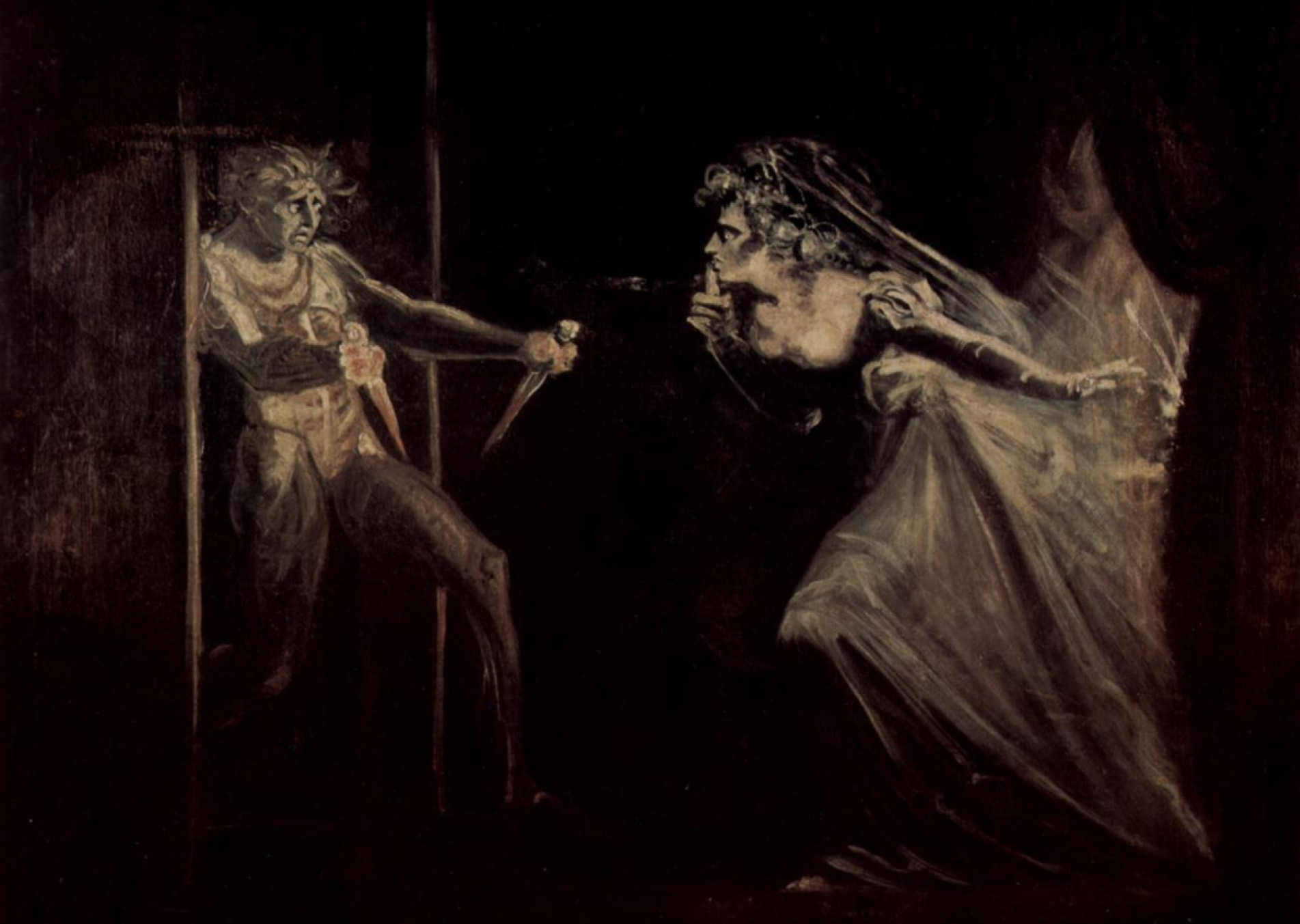 Algumas menções diretas do livro podem ser relacionadas à tragédia de “Macbeth”, do mesmo Shakespeare e citarei apenas algumas. Antes, porém, lembrarei o leitor: a peça teatral “Macbeth” se desenrola na Escócia. Três bruxas profetizam que Macbeth se tornará barão e depois rei. O primeiro vaticínio se realiza e Macbeth começa alimentar a vontade de se tornar rei, mas hesita. Incitado pela ambiciosa esposa, ele assassina o rei Duncan e assume seu posto. No decorrer da obra, Lady Macbeth é tomada pela culpa e se suicida, enquanto o marido vai se tornando cada vez mais insensível e passa a cometer assassinatos seguidamente.