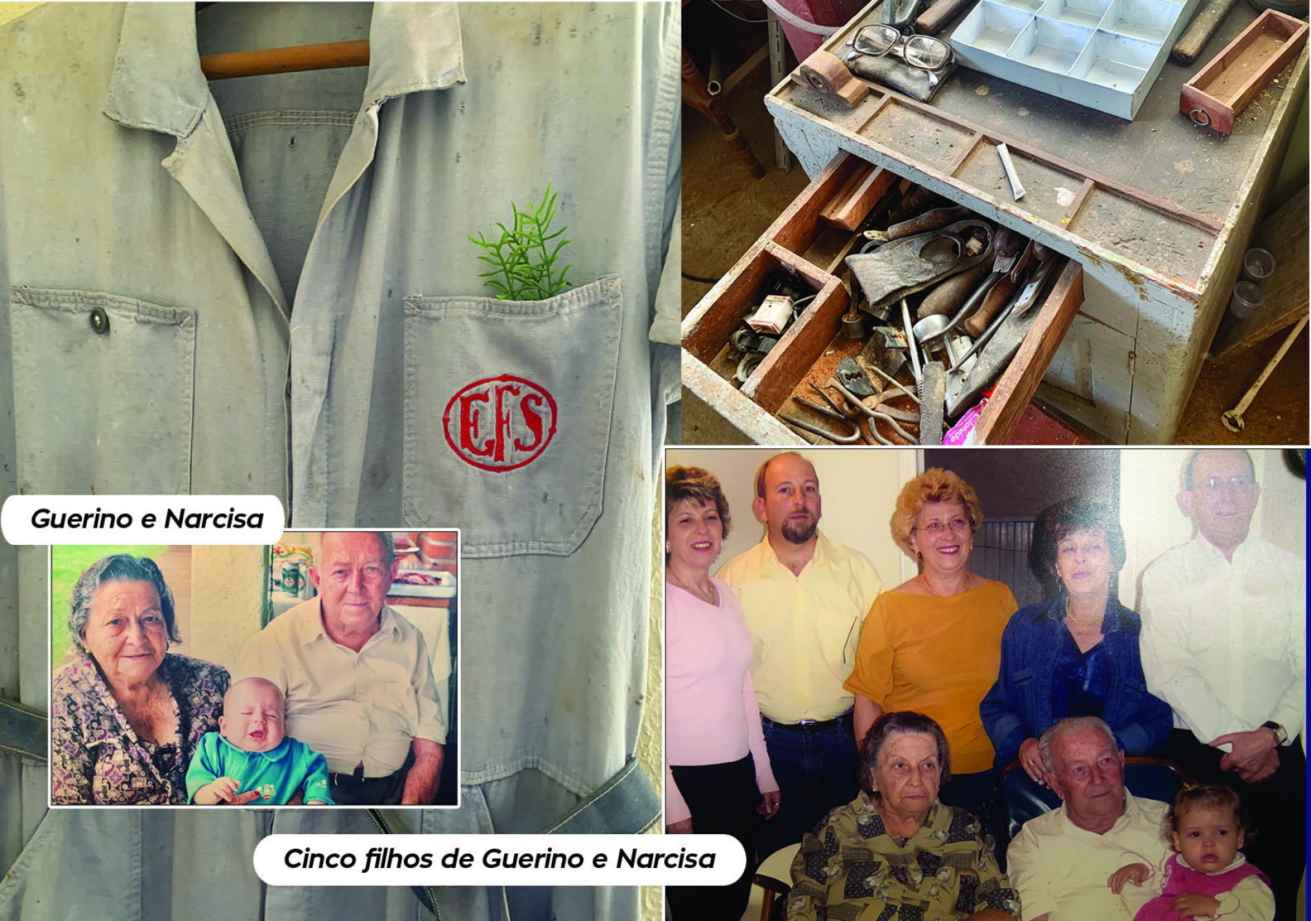 Hoje, na casa onde Guerino viveu mais de 80 anos -- na rua Borba Gato, 115 -- há um verdadeiro museu organizado por seus filhos. As lembranças de trabalho da exemplar vida que teve em mais de 70 anos de serviços fazem parte do acervo. No café com bolo das tardes de sábado, reunindo os filhos Odival Sabadin, Norma Sabbadin Mendes, Neire Sabbadin Clarin Pereira, Nilza Sabadin Segamarchi e Osvaldir Sabadin, há uma certeza: o amor da família pelos pais. É louvável o carinho com que eles guardam as relíquias do pai e da mãe. Na sala museu, eu vi o último macacão que ele usou na oficina da Estrada de Ferro Sorocaba. Objetos em madeira que ele esculpia, como pássaros, instrumentos musicais -- violão e cavaquinho -- e móveis, estão preservados em cada cômodo. Chama a atenção os utensílios recebidos por Narcisa e Guerino em sua trajetória de vida conjugal, como cristais, vasos e uma infinidade de itens guardados nas prateleiras da cristaleira. Na parede da sala, os diplomas conquistados pelo Guerino na EFS ilustram os seus 30 anos de serviços prestados com mérito na ferrovia. Na sapataria do Guerino, localizada em um quarto onde ele exercia a sua profissão nas horas vagas, os filhos mantêm as ferramentas em gavetas. Há torno elétrico onde ele lixava e polia os sapatos, pé de ferro para consertos de botas e colocação de saltos, máquina de costura e apetrechos dos mais variados. A caderneta de anotações com os nomes dos clientes e valores contabilizados em cada serviço executado nos remete a uma lista de personagens históricos do bairro Além Linha. Páginas com nome e valores, chamam a atenção em 1981, como por exemplo, o Rogério Gonçalves.