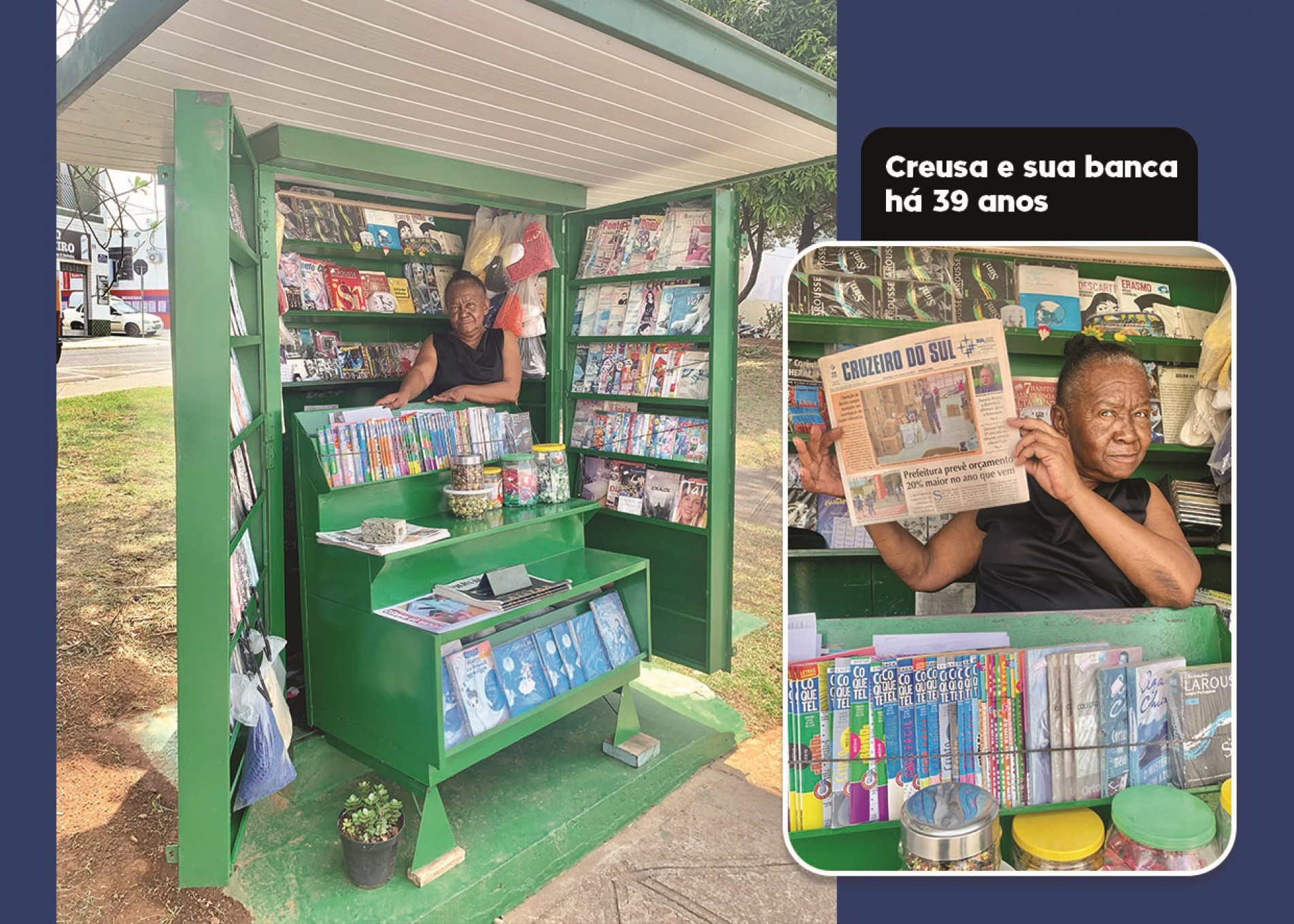 A banca na Praça Benedito Paes de Almeida, Vila Santa Rita, no bairro Além Linha, é administrada pela Creusa, há 39 anos. Reinaldo Camargo, Sônia Rafa e Maria Teresa Bastos consideram a Creusa uma vitoriosa em manter a mais de três décadas o seu negócio. Fui conhecer a Creusa. Ela, simpática e sorridente, contou um pouco da sua vida desde quando começou com a banca em 1983. Tinha sido demitida de uma empresa em Sorocaba e apostou na compra da banca. Creusa relatou que vendia por dia 200 exemplares do jornal Cruzeiro do Sul. Mãe da Rosângela e avó do Rodrigo, Thiago, Christian e Cristiano, além de ser bisavó da Natali. Com 71 anos de idade, levanta cedo e às 7 horas já está com a banca aberta. Filha de Cicero de Moura e Luzia Oliveira de Moura, a Creusa Maria de Moura é uma mulher fantástica que tem muitas histórias para contar todos os dias aos clientes da sua banca.