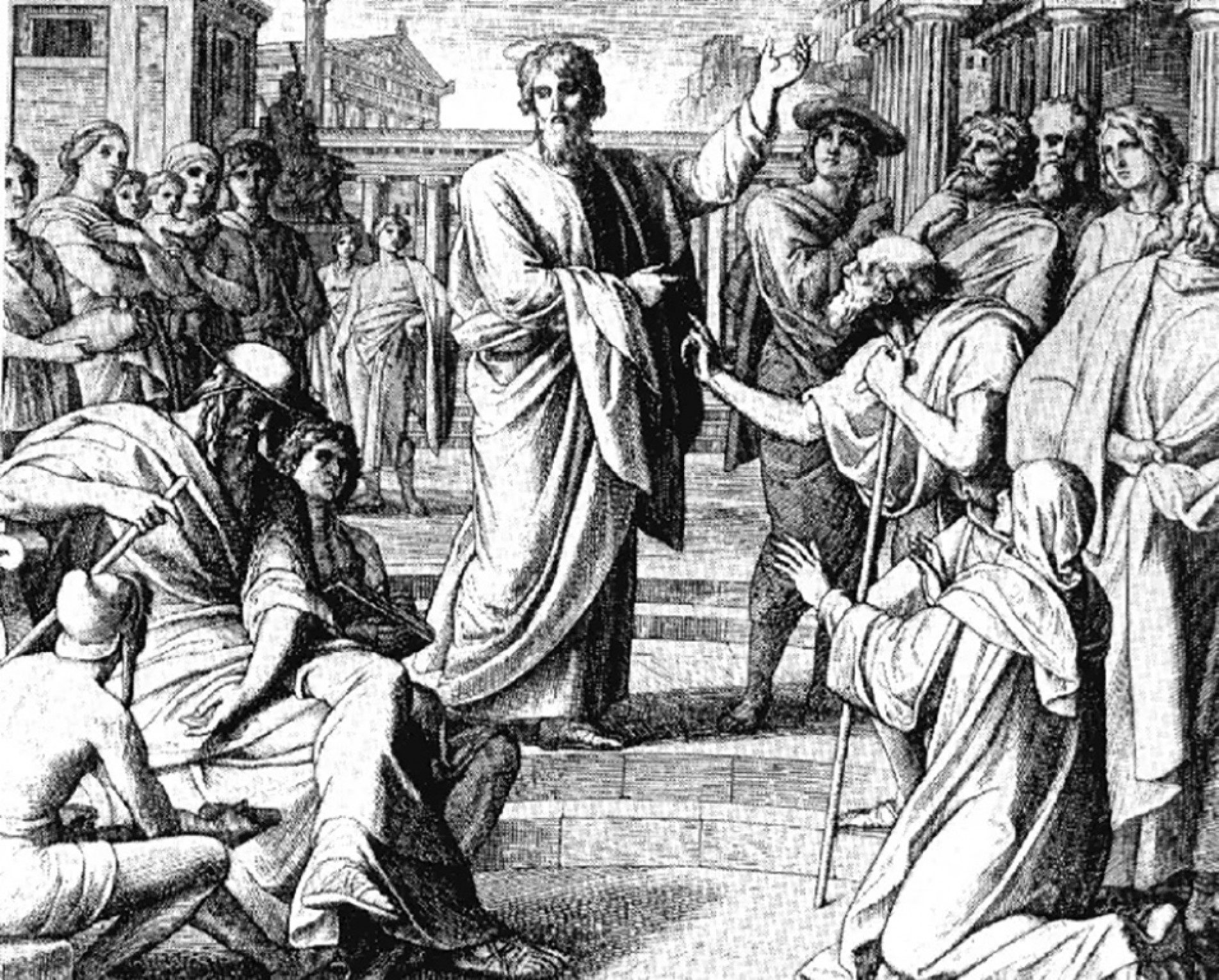 Atenas era uma cidade pequena e politicamente insignificante, mas representava o mundo da filosofia grega. Os inúmeros templos e altares dedicados a deuses importados, as escolas filosóficas, os diálogos socráticos na praça pública, a curiosidade por novas doutrinas, tudo isso era a marca distintiva daquela cidade que representava, melhor do que todas, a cultura grega.