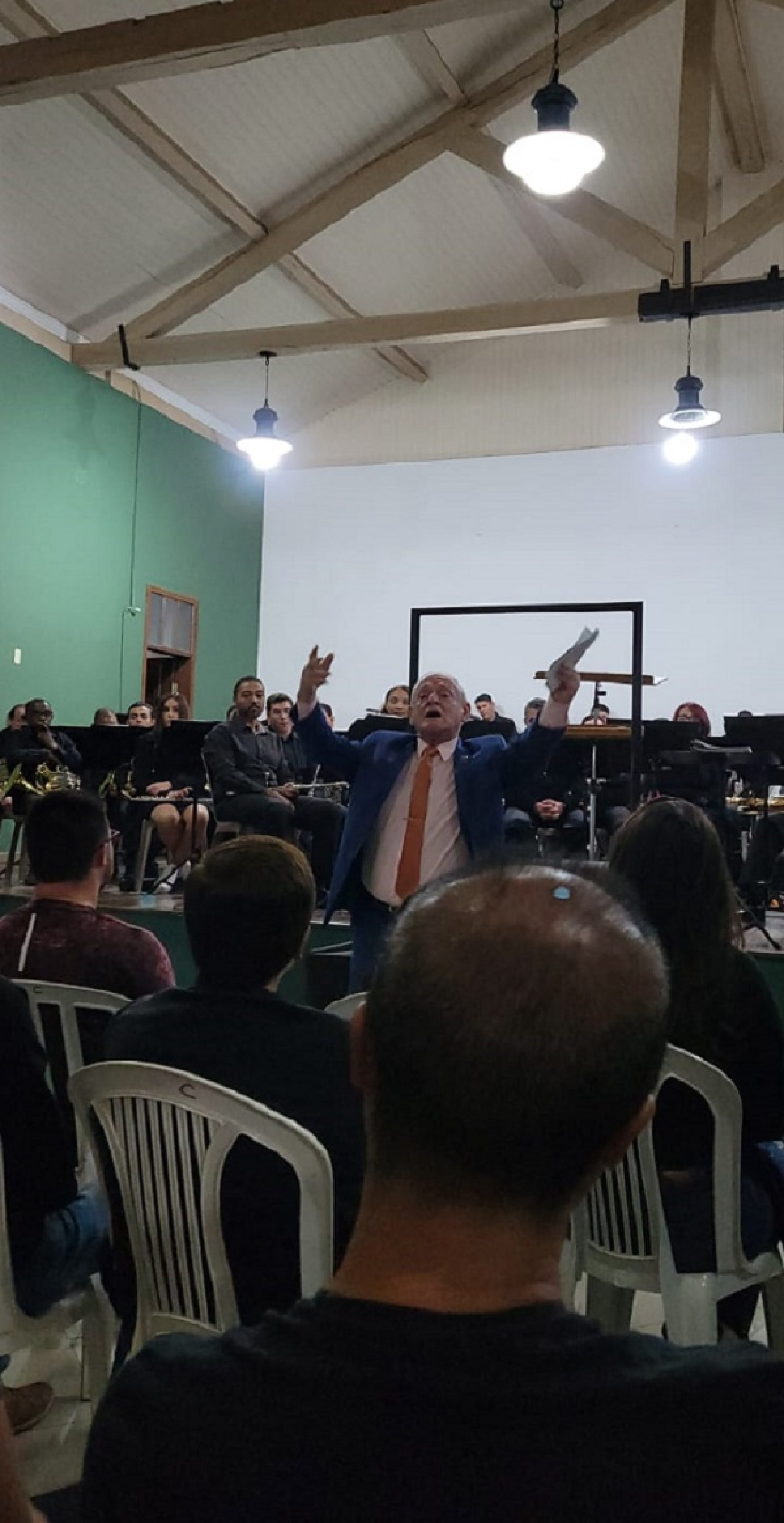 Nossa visita ocorreu em meio aos últimos minutos de produção, quando pudemos conferir as importantes tarefas dos bastidores. A poucas horas do início do concerto sinfônico, os músicos da Banda Lira São João, o trompetista Ravel de Camargo e o maestro Bruno Cardoso dos Santos, finalizavam a distribuição dos equipamentos e partituras nas posições de palco que seriam ocupadas pelos quarenta membros desta centenária banda de percussão e sopro. Ali já constatamos que o empenho pessoal nesta produção tinha dupla razão de ser: a noite também celebraria a estreia da temporada da banda para o ano de 2022. Uma parte do concerto sinfônico pode ser conferida na página da Associação Musical Lira São João.