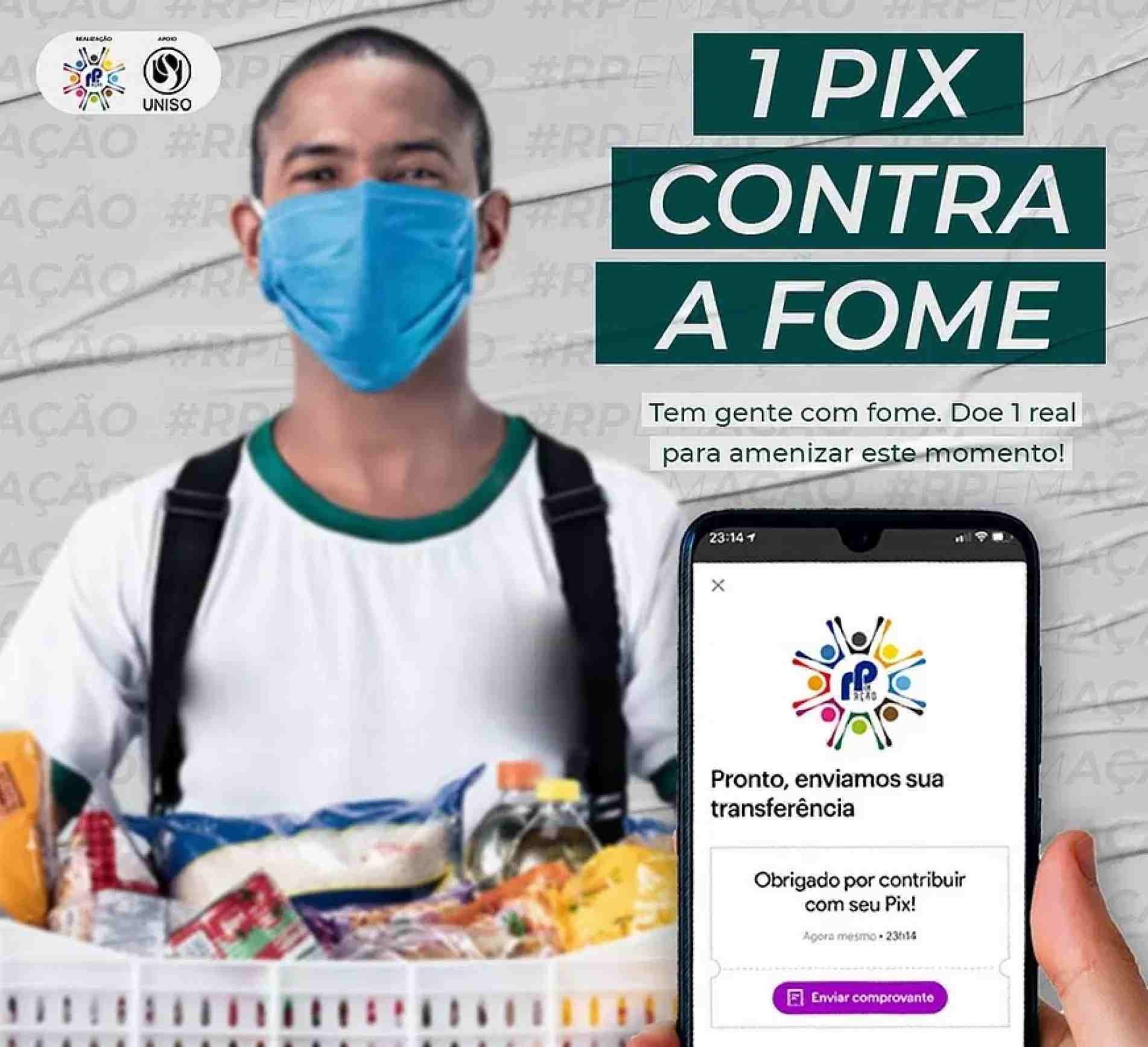 A pandemia do coronavírus tirou e tem tirado a comida das mesas dos brasileiros. Pensando nisso, o projeto "RP em Ação", do curso de Relações Públicas (RP) da Universidade de Sorocaba (Uniso), lança nesta quarta-feira (12) a campanha "1 Pix contra a fome", com doações a partir de um real que serão convertidas em cestas básicas à Central Única das Favelas (CUFA), de Sorocaba.