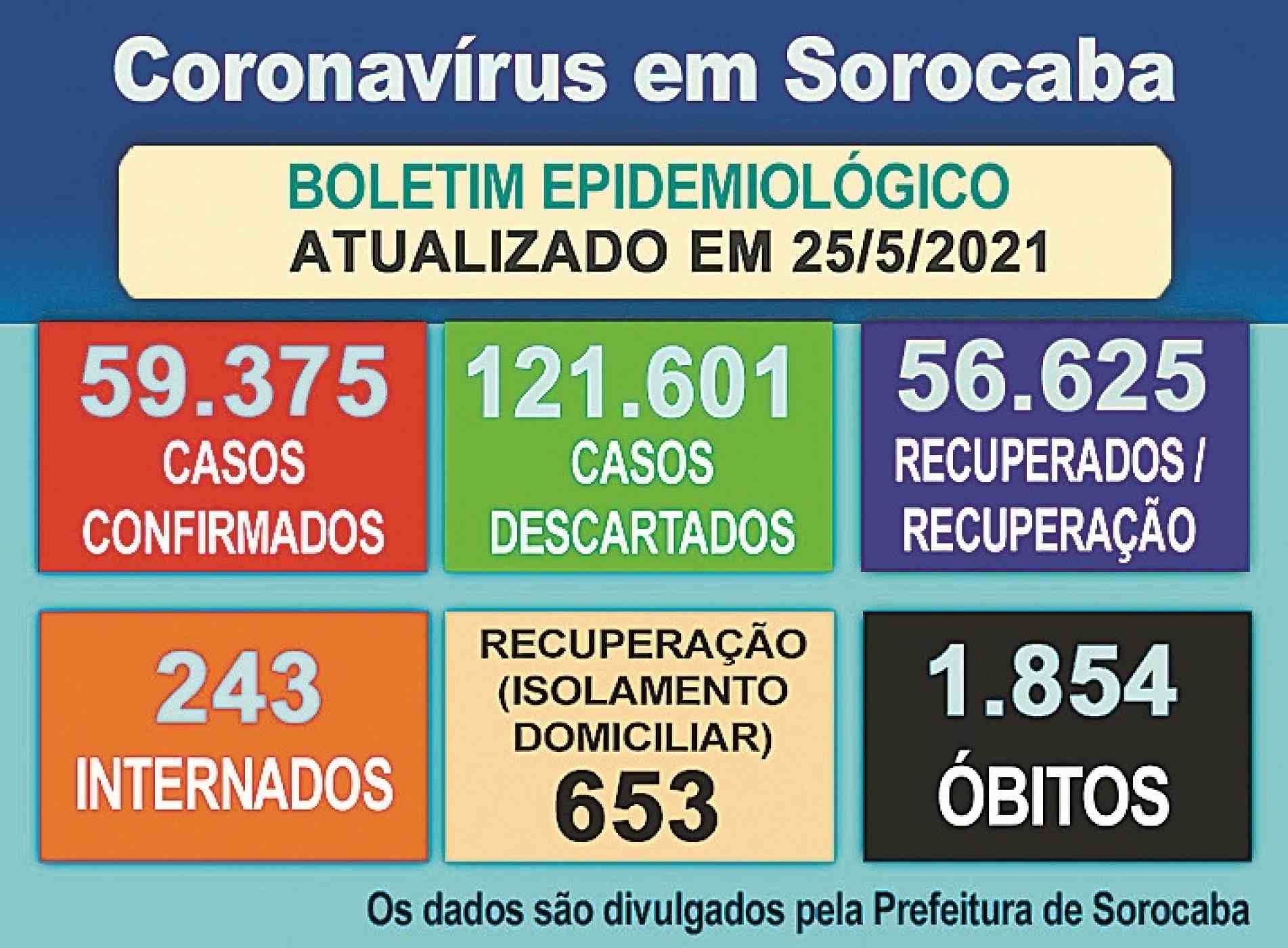 A cidade também registrou mais 13 mortes na data, elevando o total a 1.854. Chama a atenção entre os números que 11 das vítimas morreram em unidades de urgência e emergência de Sorocaba. Os pacientes tinham entre 40 e 75 anos, dois deles sem comorbidades. As mortes ocorreram entre 19 e 25 de maio.