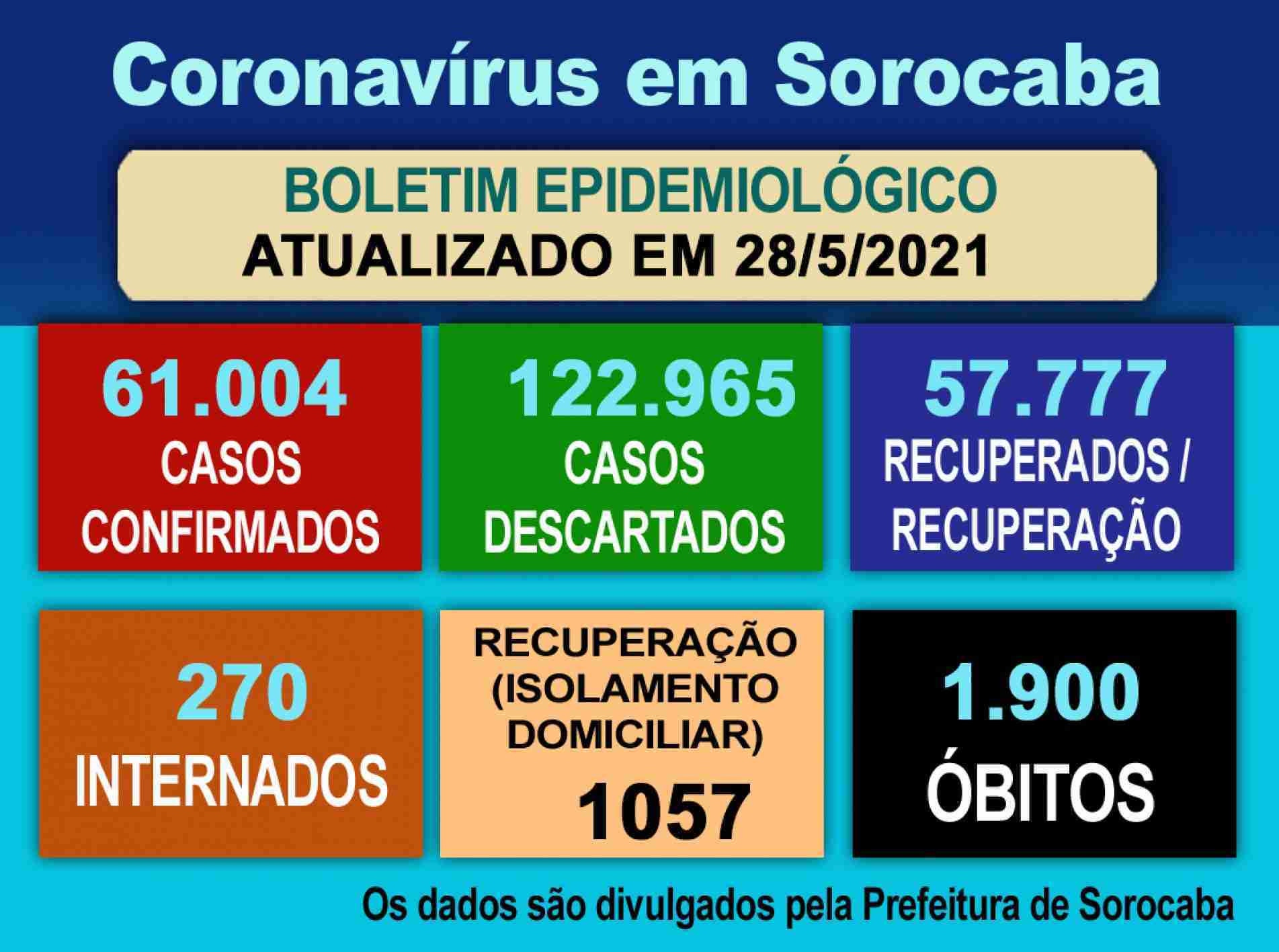 Com 13 novos óbitos, Sorocaba atingiu ontem (28) 1.900 mortes em função da pandemia do novo coronavírus. As informações são do boletim epidemiológico divulgado pela Secretaria de Saúde de Sorocaba (SES).
