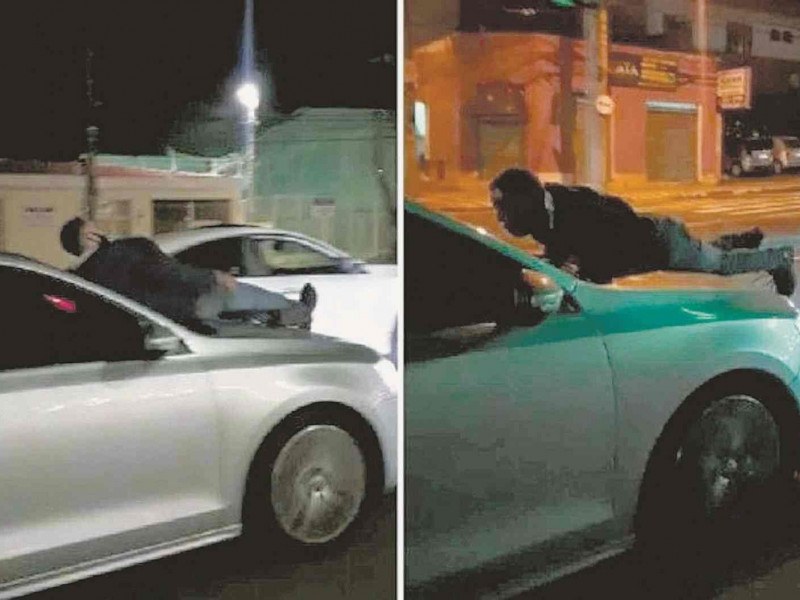O entregador Pablo Bitencourt Ferrari, o “Chapolin”, foi quem filmou o vídeo que viralizou nas redes sociais. Segundo ele, o homem, que parecia estar sob efeito de entorpecentes, pulou telhados e outros carros antes da filmagem.