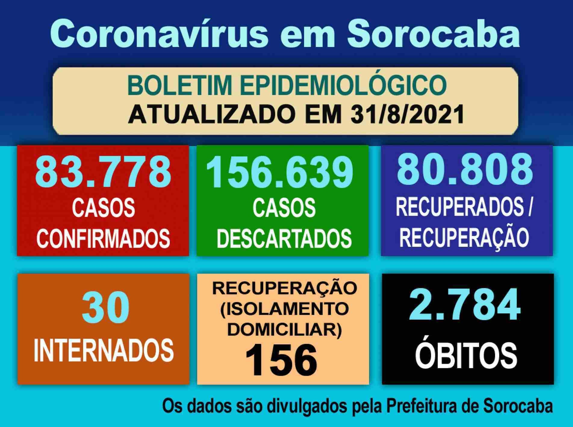 Os óbitos confirmados aumentaram para 2.784. Foram seis novas vítimas. Elas tinham entre 19 e 80 anos. Uma delas, inclusive, de 60 anos, não tinha comorbidade para o novo coronavírus. Três das mortes foram de pessoas que tinham cardiopatia e outras foram de pessoas que tinham obesidade. As mortes ocorreram entre dia 27 (agosto) e ontem (31). A maior parte das mortes, quatro, ocorreram na rede pública de saúde. Até ontem, Sorocaba não tinha óbitos em investigação. A taxa de letalidade no município é de 3,3%.