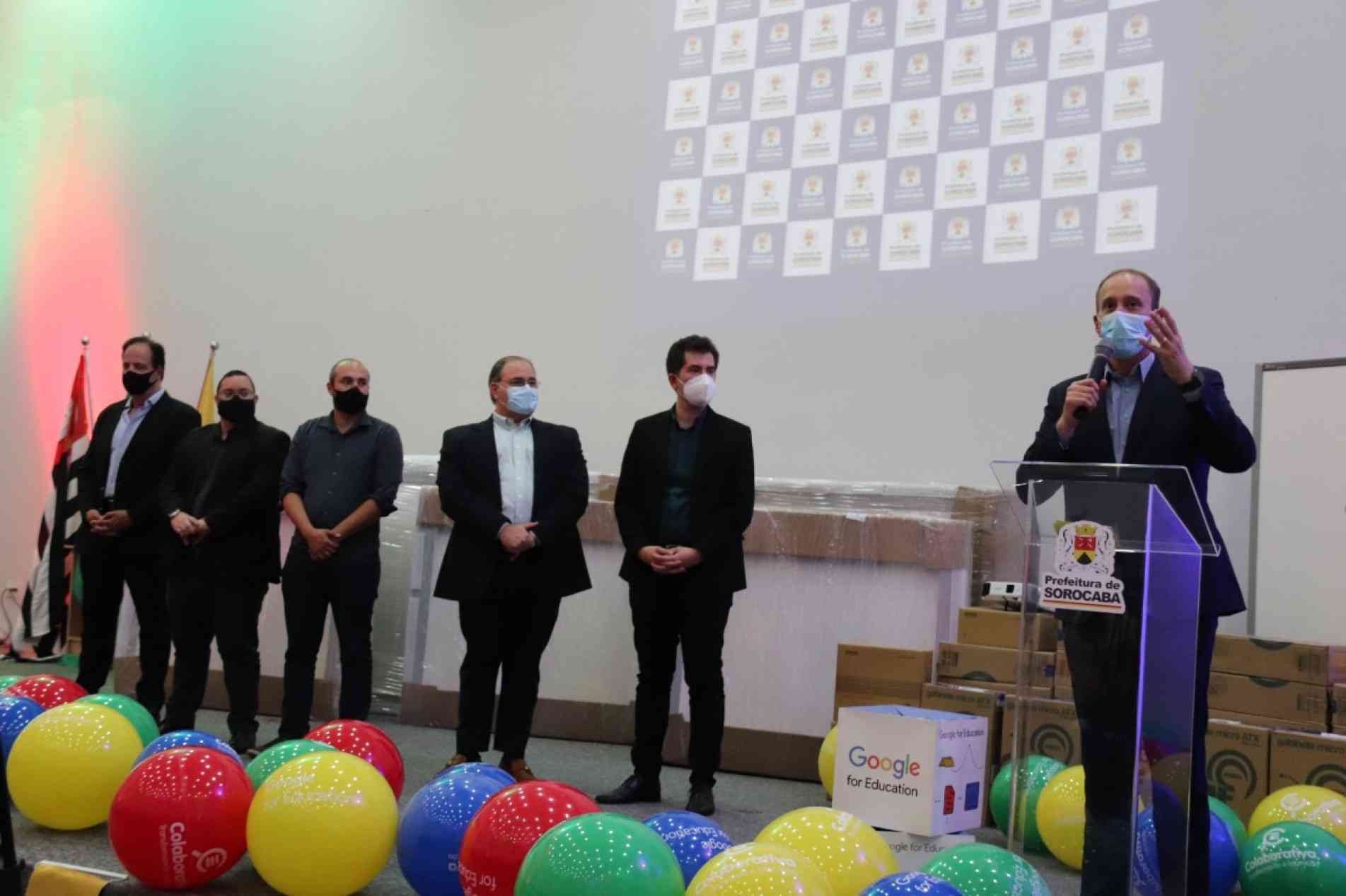 As 175 escolas municipais de Sorocaba serão equipadas com lousas digitais até 2022. Além disso, todas elas receberam a plataforma Google For Education. O anúncio foi feito pelo prefeito Rodrigo Manga (Republicanos), pelo secretário de Educação, Márcio Carrara, e pelo gestor de Desenvolvimento Educacional da pasta, Paulo Bruno Pistilli, na manhã desta quinta-feira (25). As ferramentas foram apresentadas em um evento no Centro de Referência em Educação (CRE), no Jardim Saira.