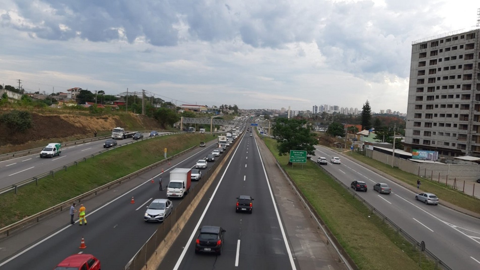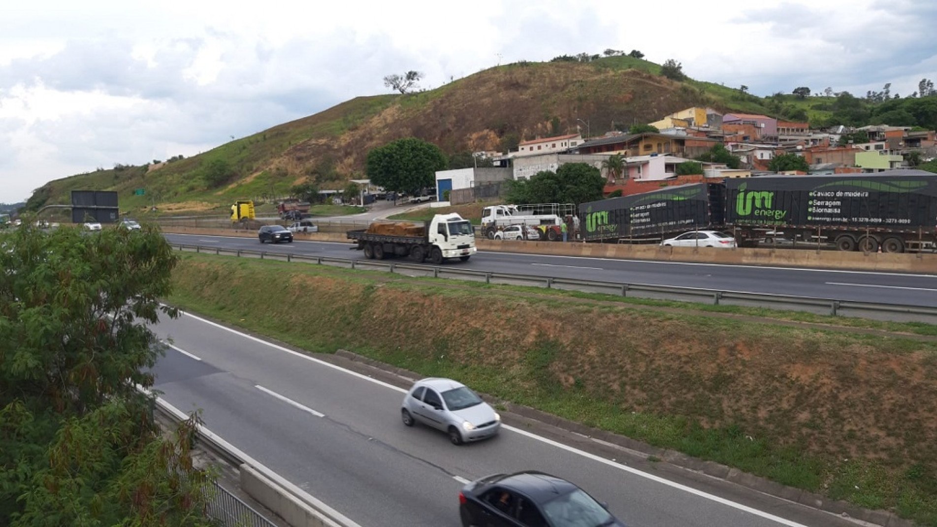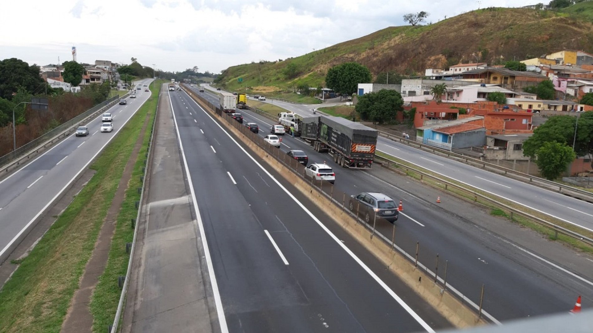 A faixa da direita precisou ser bloqueada em um trecho, a fim de evitar acidentes e garantir a segurança das equipes de socorro.
