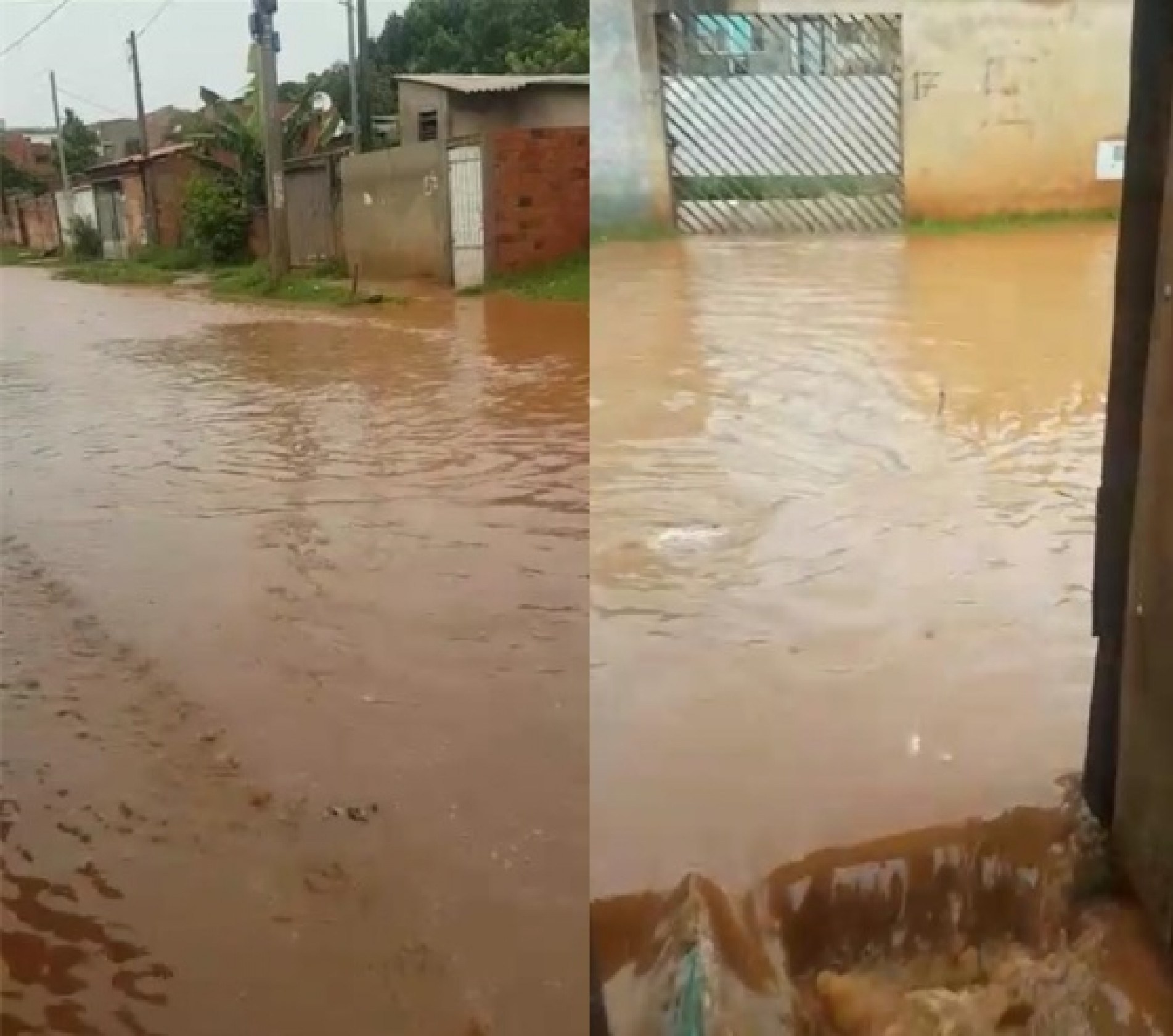 Vídeos foram gravados após as chuvas que atingiram a região na última segunda-feira (31); água chega a invadir as casas