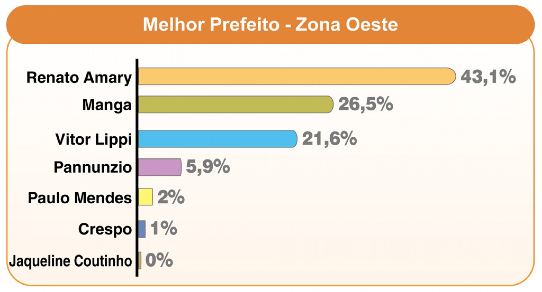 Dependendo do parâmetro pesquisado, o atual prefeito Rodrigo Manga (Republicanos) e o ex-prefeito Renato Amary dividem a preferência dos entrevistados. Ex-deputado estadual e federal, Amary esteve à frente do Executivo sorocabano por dois mandatos seguidos, de 1997 a 2004.
