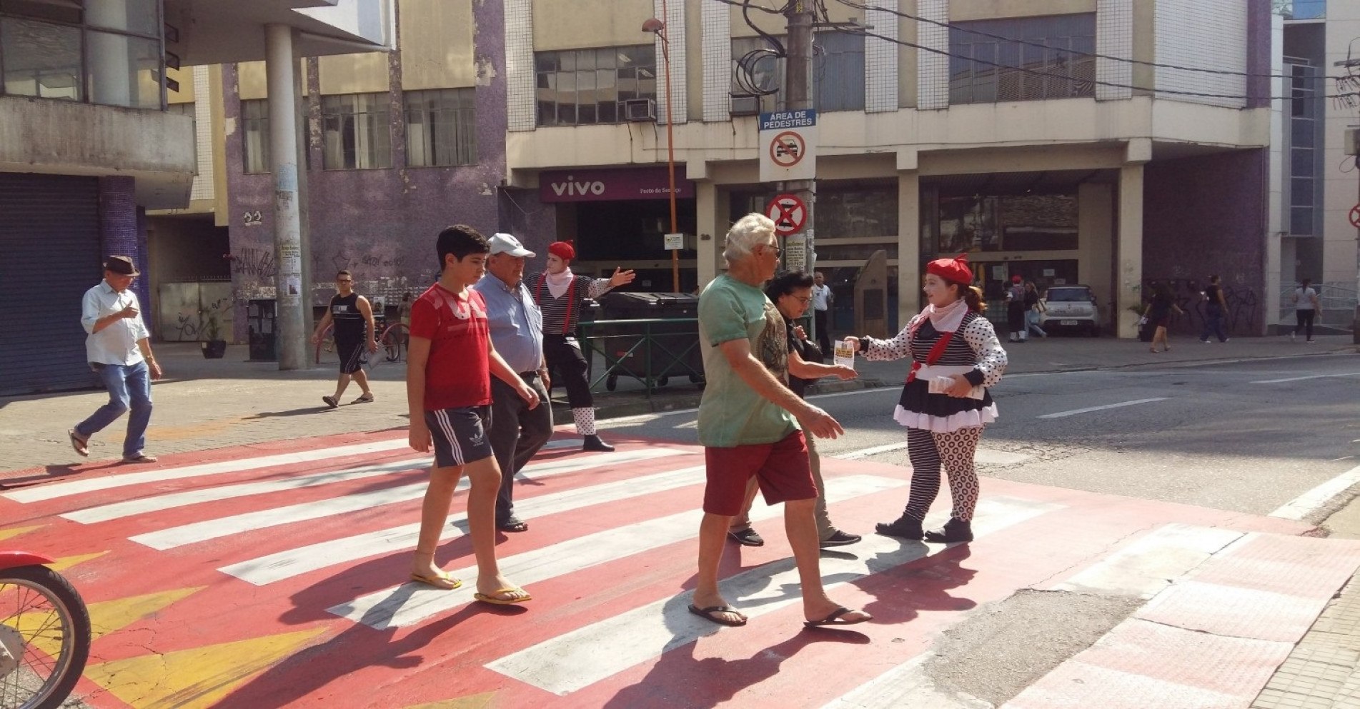 A ação de destaque no mês será a Faixa Viva, em que um grupo de mímicos realiza atividades lúdicas de conscientização sobre a travessia segura, também com enfoque na faixa de pedestres. A atividade ocorrerá em seis datas, sendo a primeira delas nesta hoje, na rua Padre Luiz, aos fundos da Catedral, das 9h30 às 11h30. “Trata-se de uma ação que precisa ser destacada sempre, principalmente na região central, onde há um grande número de pedestres que circulam diariamente“, diz a gerente de Educação para o Trânsito da Urbes, Cibele Soares.