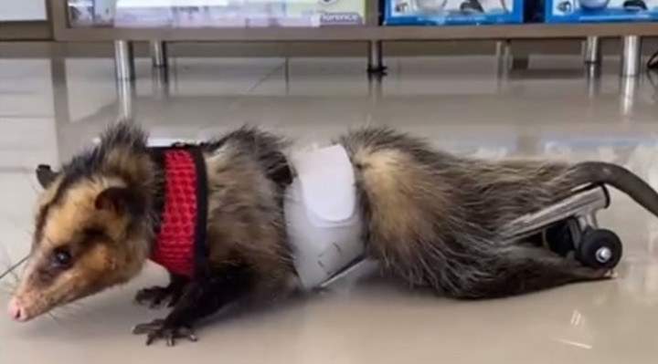 Gambá acidentada ganha minicadeira de rodas em Sorocaba