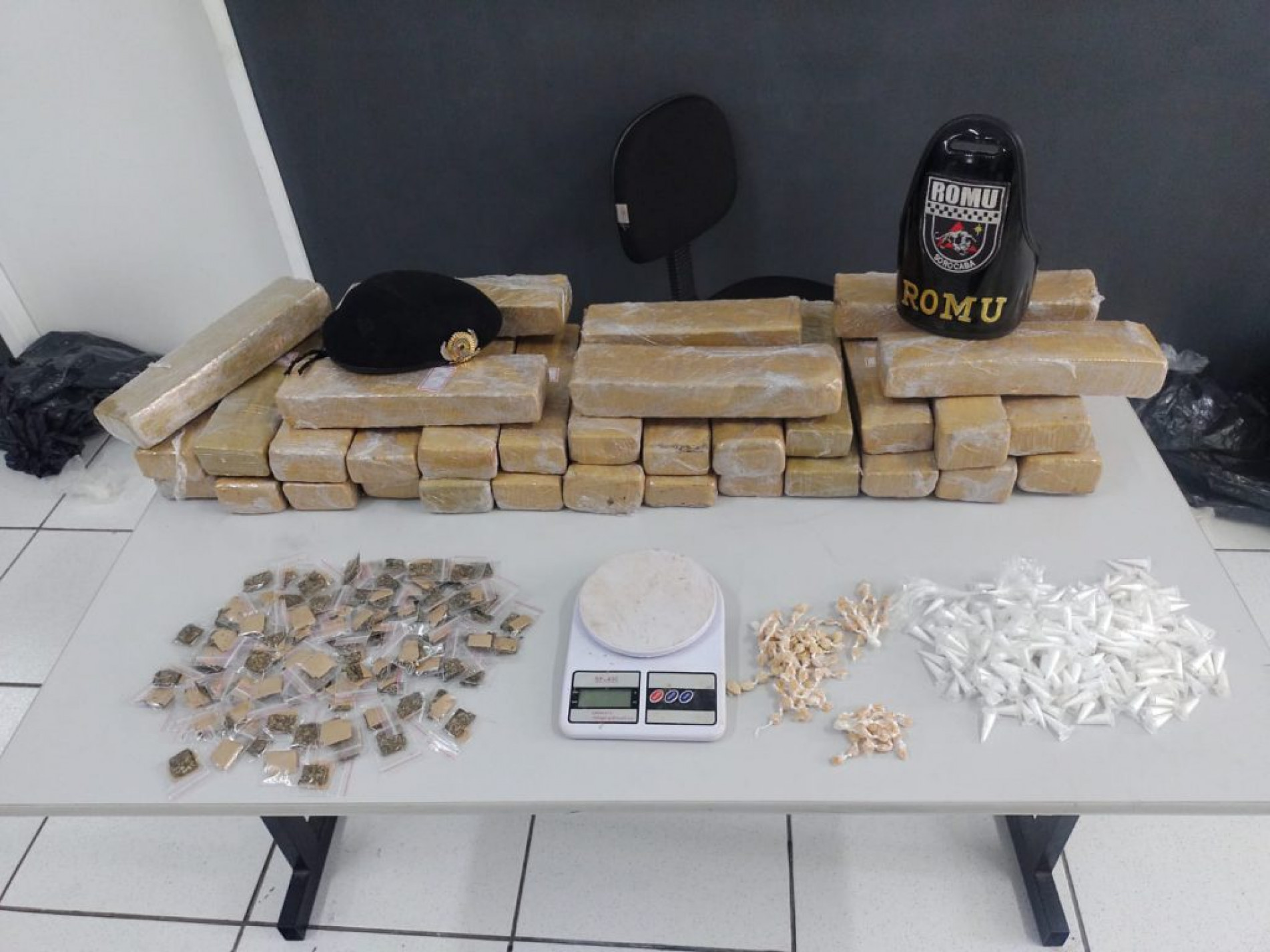 Porém, em meio ao matagal, os GCMs encontraram um saco plástico contendo 33 tabletes de maconha, 246 microtubos de cocaína, 112 porções de maconha prontas para a venda e 130 pedras de crack.