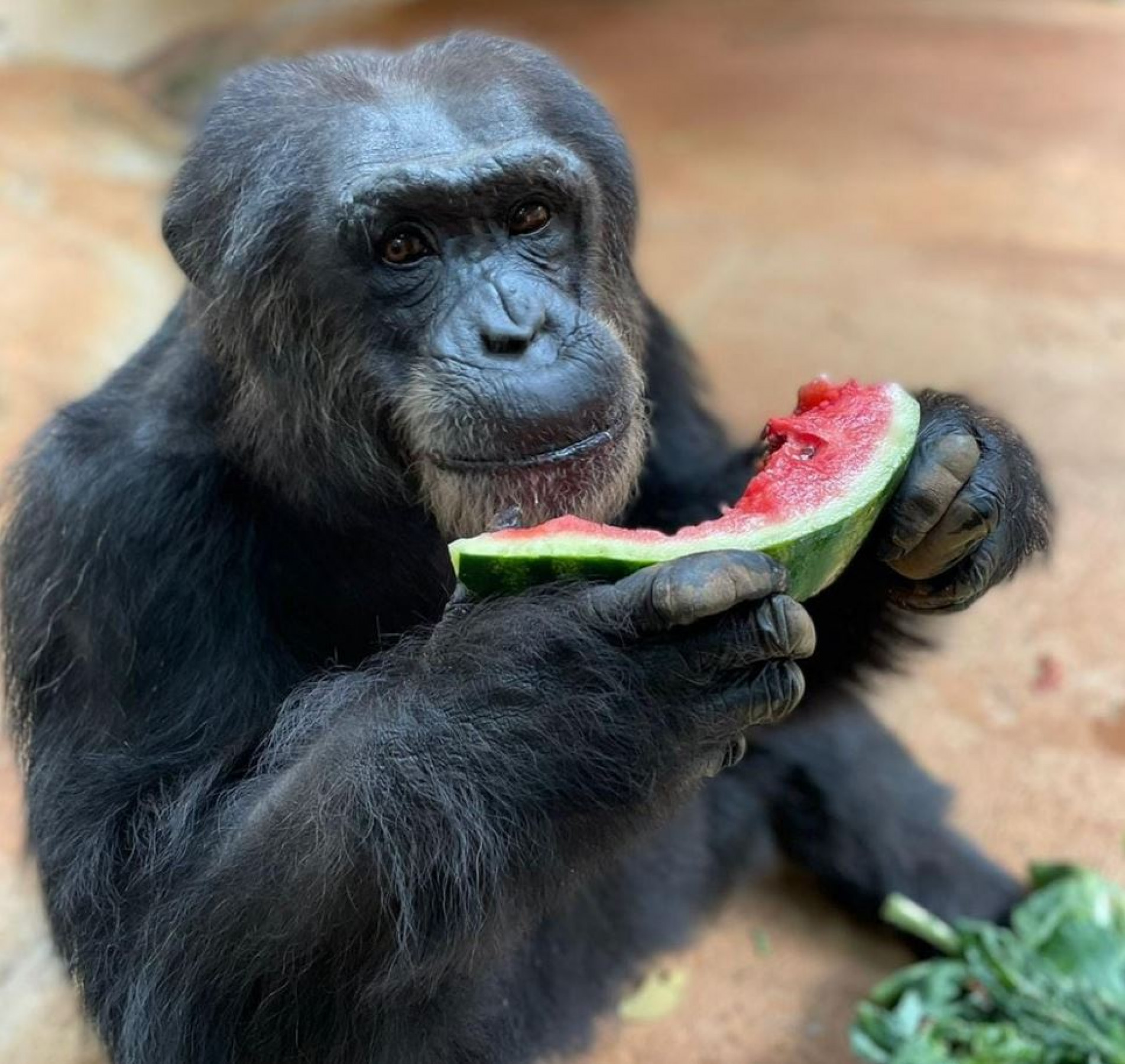 O chimpanzé Paulinho, um dos habitantes do Parque Zoológico Municipal Quinzinho de Barros, completou, na sexta-feira (8), 33 anos de vida. Para comemorar a data, a equipe do Zoo preparou um bolo especial e entregou a ele, como forma de enriquecimento ambiental. Todo decorado, o mimo foi preparado com cinco ingredientes que fazem parte da dieta da espécie: melancia, abóbora, abacaxi, maçã e couve.