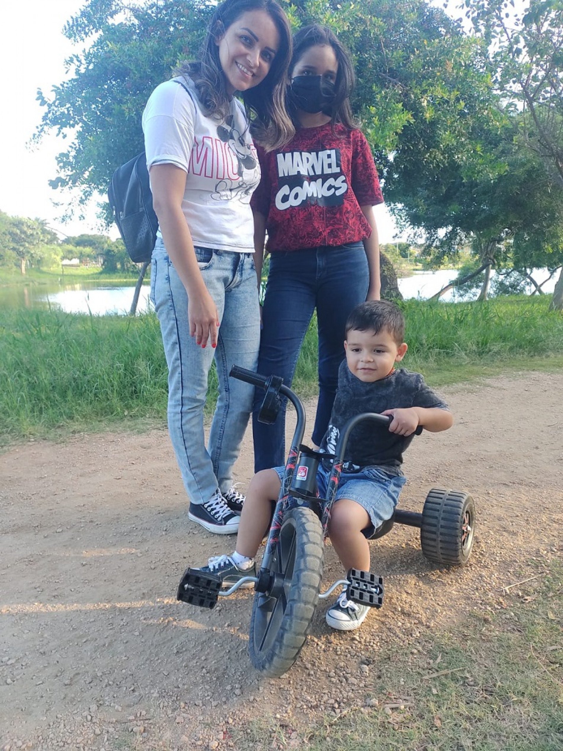 Geralmente, a Aline Antunes costuma ir com toda a família ao parque. Foi a filha, a Ana Clara, de 13 anos, que escolheu o local. Ainda havia a presença do Rafael, o caçula de três anos. Mas faltou o marido, que estava trabalhando, e a mascote da família. Ela explica um dos motivos para a escolha do programa. “Nem sempre é possível ir para longe. Então, quis passear um pouco com as crianças, para aproveitar”, diz. O único problema do local, conforme ela, é a presença dos pernilongos. Felizmente, ela leva sempre repelente.