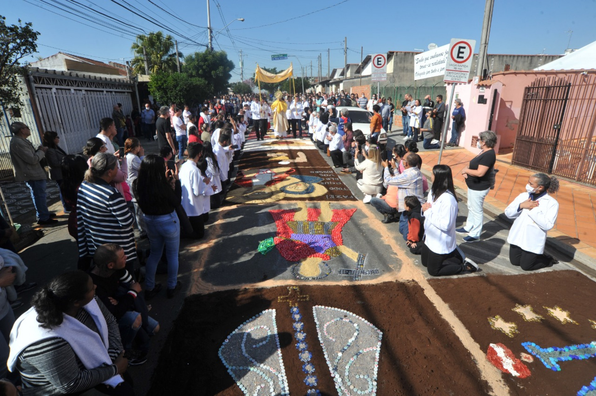 As celebrações de Corpus Christi foram retomadas em Sorocaba, após dois anos suspensas devido à pandemia de Covid-19. Nesta quinta-feira (16), diversas igrejas católicas realizaram eventos alusivos à data. Nas Paróquias do Sagrado Coração de Jesus, Santa Maria dos Anjos, São Francisco de Assis e de Nossa Senhora Auxiliadora, por exemplo, houve as tradicionais missas, procissões e montagem de tapetes.