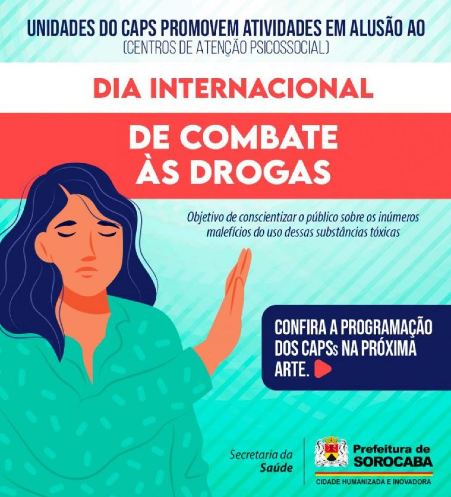 Os Centros de Atenção Psicossocial (CAPSs) de Sorocaba realizarão, ao longo desta e da próxima semana, atividades alusivas ao Dia Internacional de Combate às Drogas (26 de junho), com o objetivo de conscientizar o público sobre os inúmeros malefícios do uso dessas substâncias tóxicas.