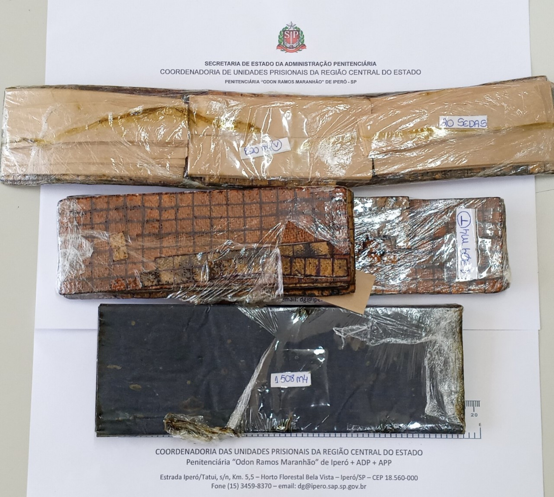 A acompanhante confessou para os policiais que estava com o material ilícito escondido na roupa, na região dos seios e genitália. De acordo com a SAP, foram encontrados 573 gramas de maconha, 65 gramas de cocaína; 100 gramas de haxixe; 3.637 micropontos do entorpecente sintético denominado “M4”, 10 pacotes de tinta para confecção de tatuagem artesanal, 3 comprimidos de estimulante sexual, 2 comprimidos de antibiótico alocados no “top” e mais 2 pacotes envolvidos em papel filme de maconha, pesando aproximadamente 250 gramas. Em outro pacote havia aproximadamente 248 gramas de maconha.
