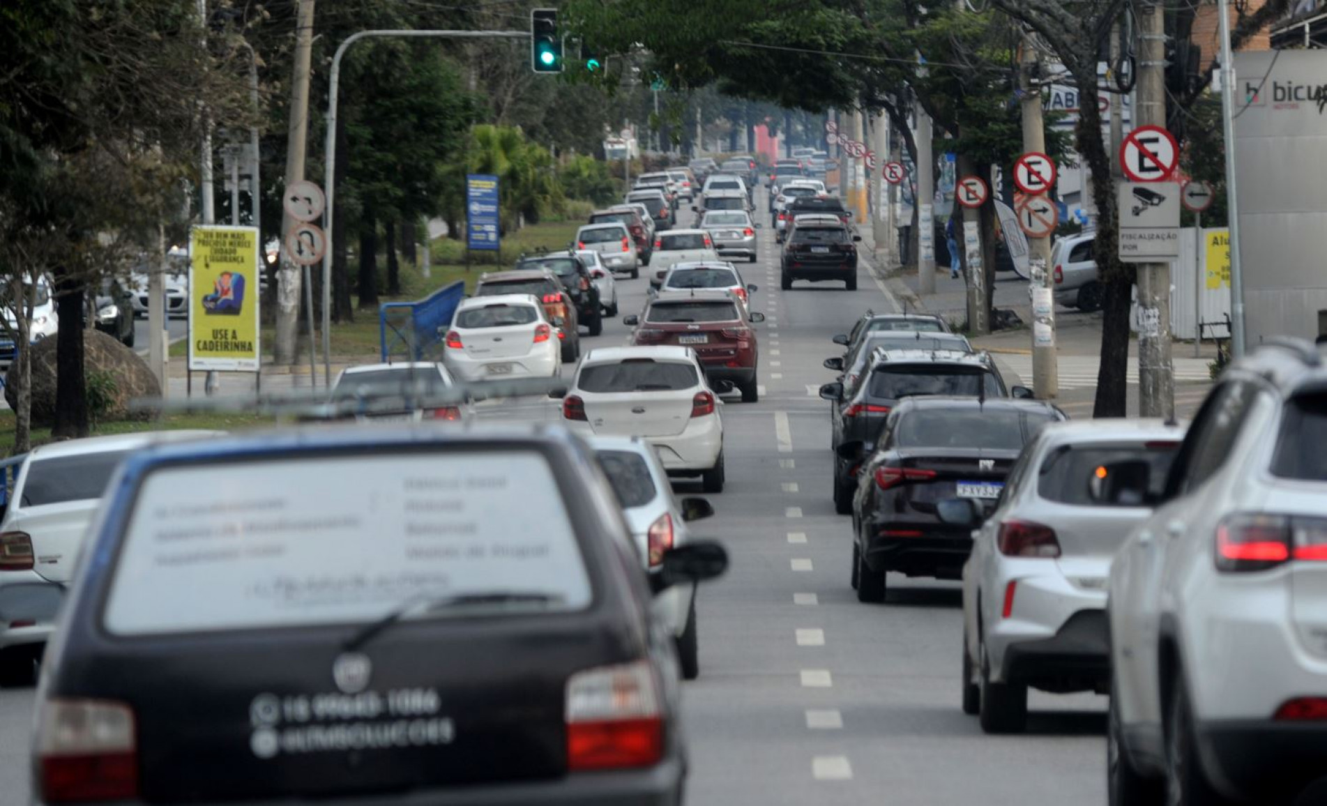 idosa, pois não encontrou vaga para estacionar. “Mesmo com o pisca alerta ligado e os poucos segundos que parei para pegar a passageira idosa, um agente de trânsito passou e fui multado”, reclamou. Ele alega ainda que costuma ver semáforos piscando em algumas vias, durante o dia ou à noite, e quase nunca há agentes de trânsito nos locais para organizar o fluxo de veículos.