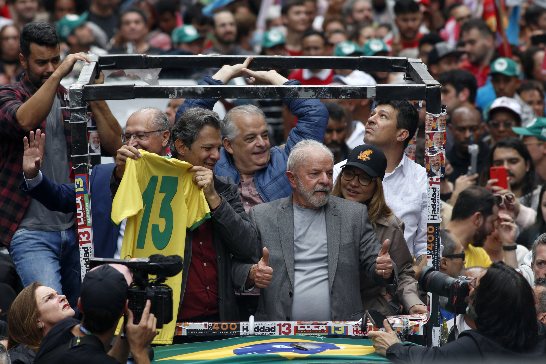 O candidato do PT à Presidência da República, Luiz Inácio Lula da Silva, e seu vice, Geraldo Alckmin (PSB), fizeram o ato final da campanha também em São Paulo. Uma caminhada com a militância partiu da Avenida Paulista e desceu pela Rua Augusta, na área central da capital. Em obediência à lei eleitoral, que veda a realização de comícios a menos de dois dias da ida às urnas, os candidatos não discursaram -- apenas cumprimentaram apoiadores.