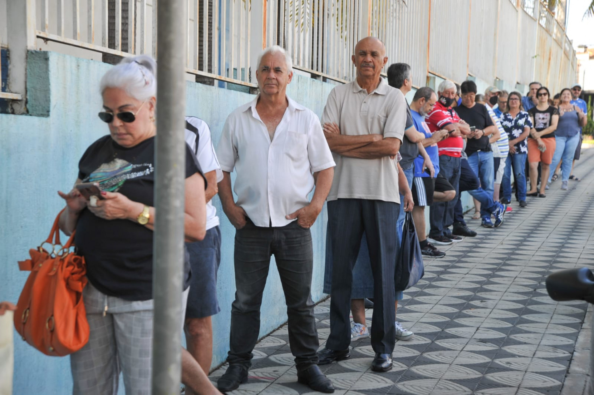 Fila na escola municipal Dr. Getúlio Vargas, em Sorocaba (crédito: Cézar Ribeiro)