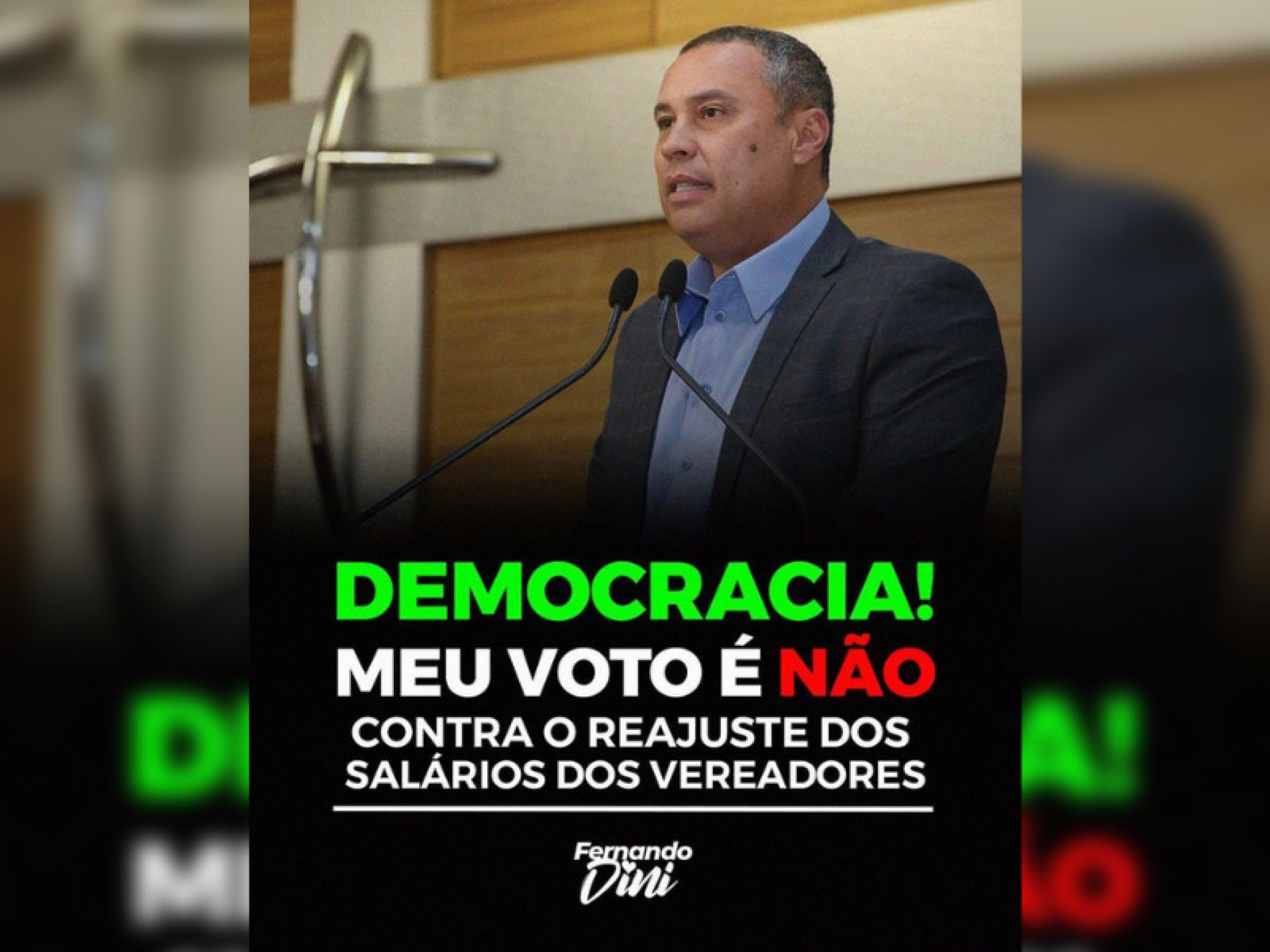 "Democracia. Meu voto é não. Sou contra o reajuste dos salários dos vereadores"