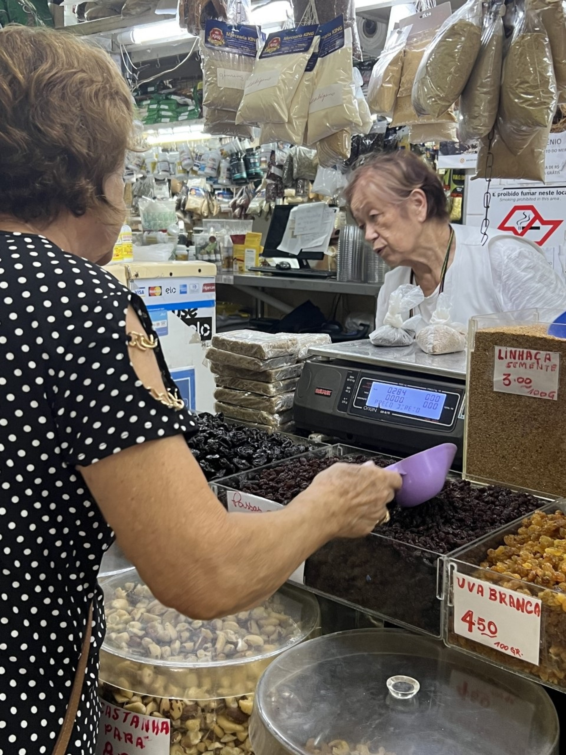 Elaine Caruzo, 77 anos, foi pela manhã no Mercado Municipal em busca da uva passa. Ela afirma que gosta de colocar o ingrediente no arroz, no salpicão e em outros pratos para as festas de fim de ano. “Eu gosto de uva passa e compro não só para as festas, mas também para fazer doces”, conta.