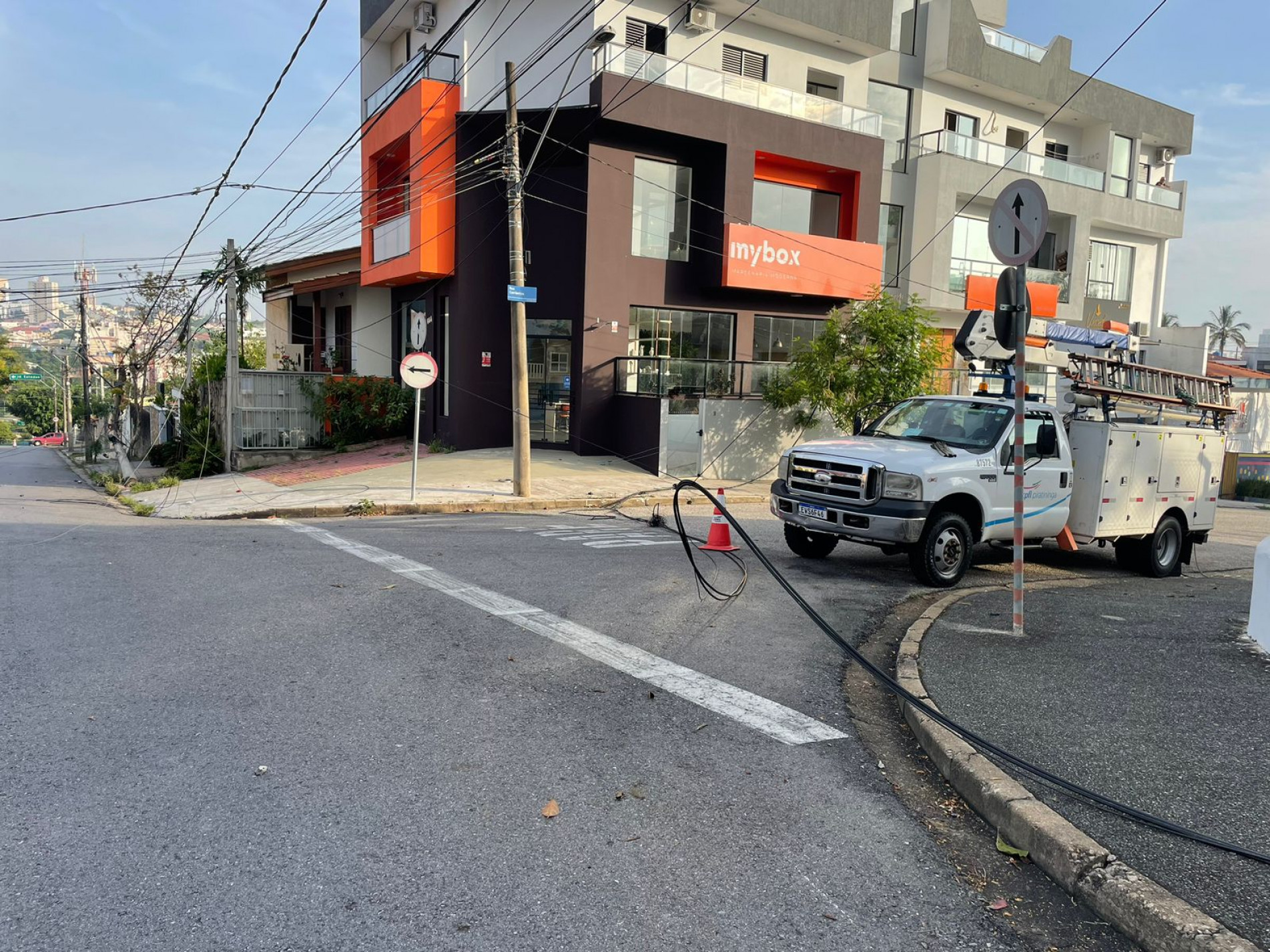 Um caminhão arrastou a fiação a danificou três postes na madrugada desta sexta-feira (24) no Jardim América, em Sorocaba. O problema aconteceu no cruzamento das ruas Sylvio Campolim e Corrientes. Conforme apurado pelo repórter André Fazano, da rádio Cruzeiro FM 92,3, o veículo desceu a via sentindo avenida Abraham Lincoln, levando os fios e puxando os postes.