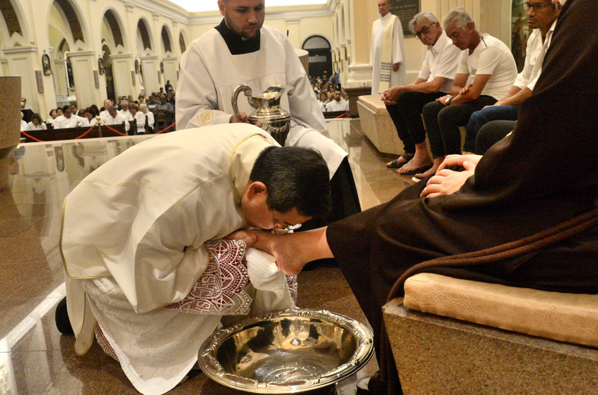 A Catedral Metropolitana de Sorocaba realizou ontem (6), na Quinta-feira Santa, a cerimônia do lava-pés, um rito católico que teve sua origem na última ceia de Jesus e é baseado no Evangelho de São João. O arcebispo dom Júlio Endi Akamine conduziu a celebração, lavando e beijando os pés de 12 fiéis, assim como Jesus lavou os pés de seus discípulos.