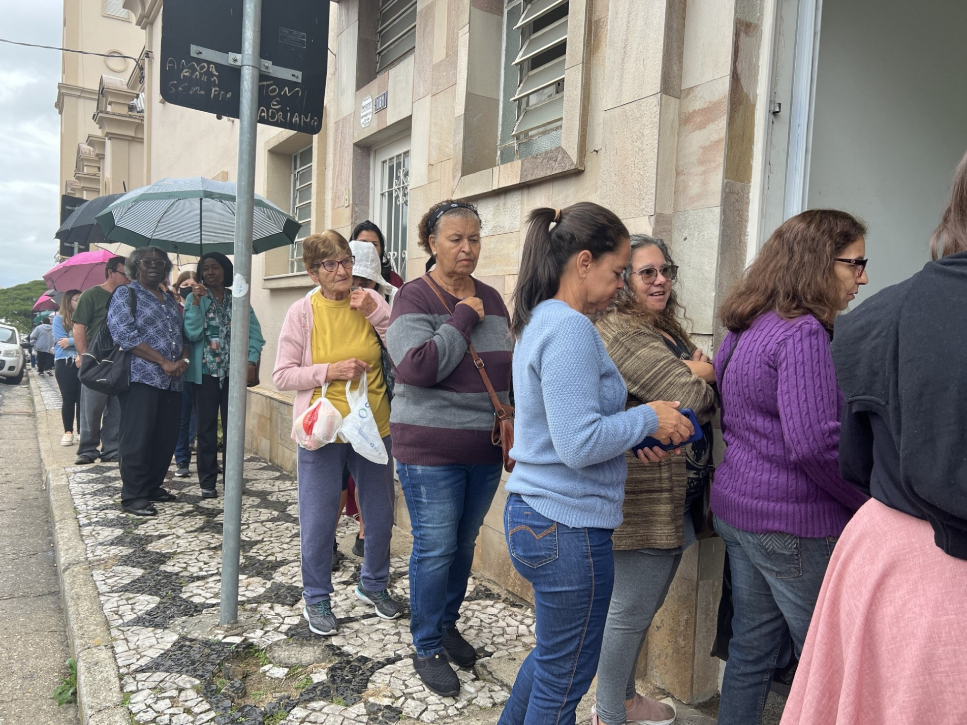 Pela manhã, apesar da chuva fraca, o movimento foi intenso para a compra dos pedaços de bolo, principalmente após às missas, e até uma fila chegou a se formar na lateral da igreja. Teve gente que estava comprando o bolo pela segunda vez e quem já faz isso há mais de 30 anos.