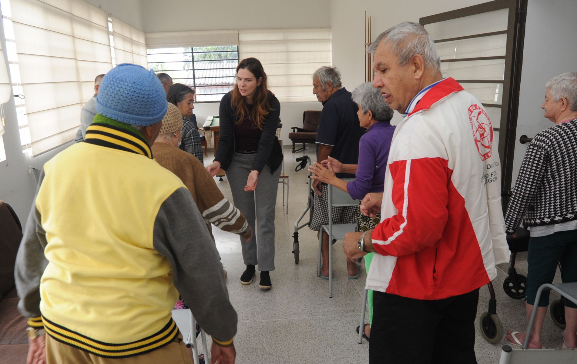 Quem guia os idosos durante a aula é Adriana Medici Rhinow, 45 anos, professora de yoga e meditação há 20 anos. Ela explica que o objetivo da meditação é purificar a mente, eliminar as tensões e negatividade que nos fazem sofrer. “Pela disciplina da meditação, nosso estado de paz interior e autoconhecimento aumenta, beneficiando a saúde de diversas maneiras, reduzindo os níveis de stress, ansiedade e insônia”. A meditação pode ser considerada uma terapia, por tratar questões psicológicas, comportamentais e emocionais, tendo um forte impacto benéfico na saúde física, além de poder ser praticada dentro de casa, no início do dia ou antes de dormir.