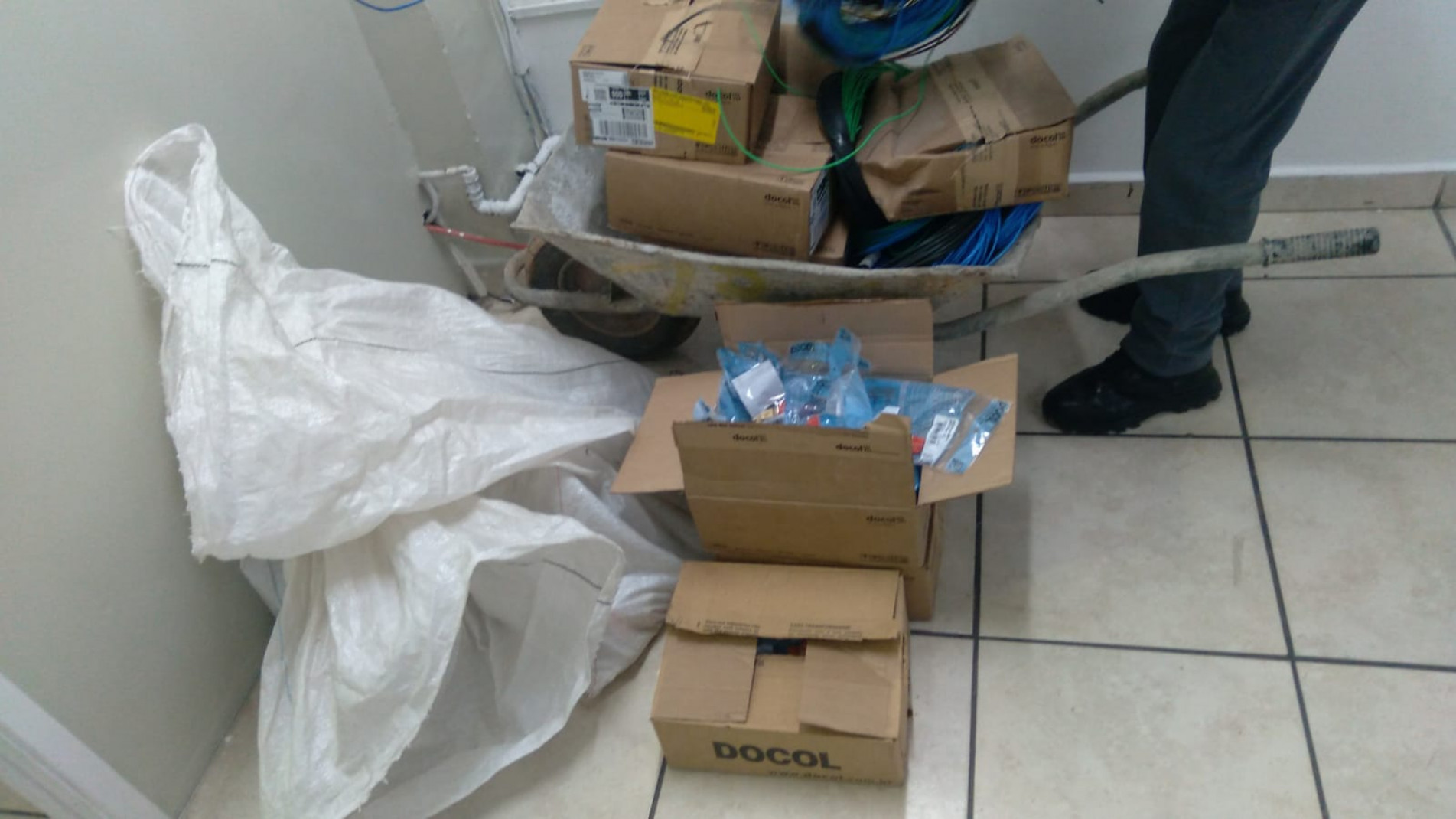 Dentro do carrinho, havia 395 registros 3/4 e cerca de 400 metros de fios de cobre pertencentes à obra, totalizando em torno de R$ 16.800.