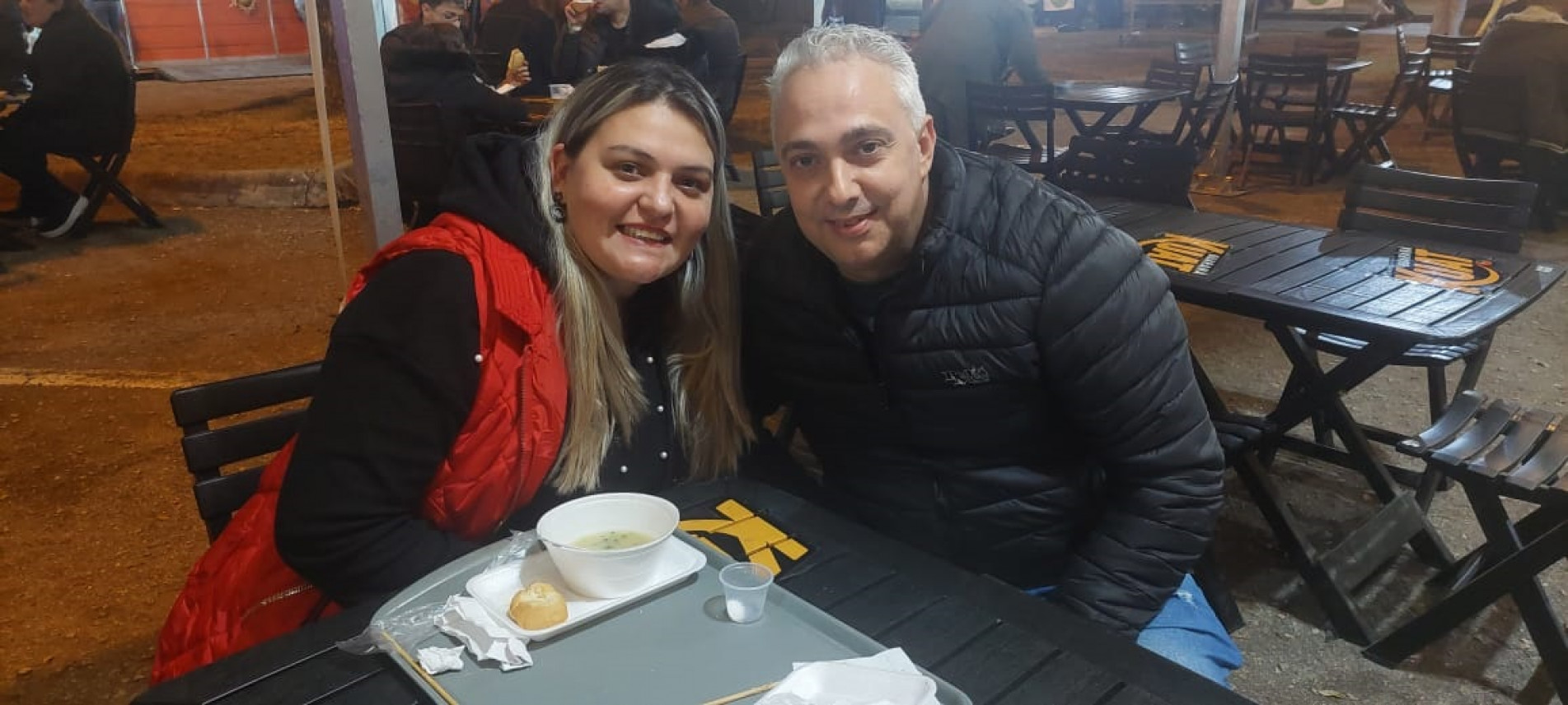 O casal Claudio Calado e Rosana Amorim, de Votorantim, não perdeu tempo para experimentar as delícias. Enquanto Rosana optou pela sopa de mandioca com costela para enfrentar o friozinho que fazia, Claudio escolheu o lanche de churrasquinho. “Gostamos dessas opções mais simples e acho que é assim que deve ser, mais raiz mesmo. Do jeito que as entidades estão posicionadas também ajuda na hora de escolher. E são tantas coisas gostosas, para todos os gostos mesmo”, comentou Claudio.