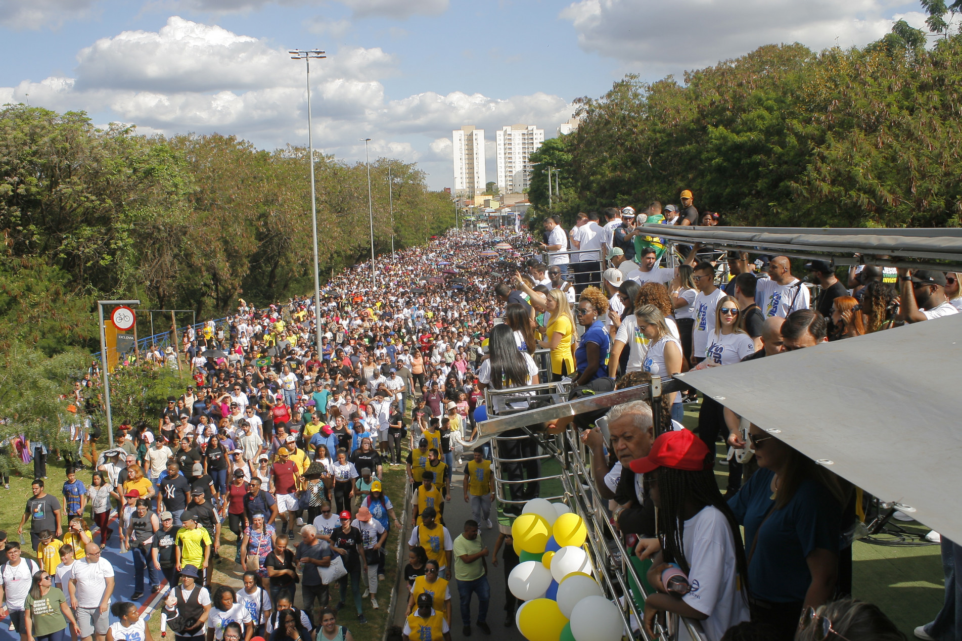 Com uma das faixas da Dom Aguirre fechada, os fiéis formaram um mar de gente que podia ser visto de longe. Eles não eram apenas de Sorocaba, mas também de outras cidades que vieram em caravanas para participar da Marcha para Jesus. O evento começou às 13h e, por volta das 15h, o Parque das Águas já estava com um público considerável.